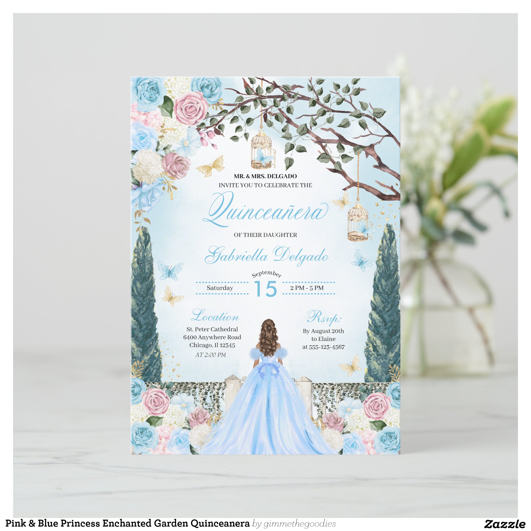 Be the first to review “Pink & Blue Princess Enchanted Garden Quinceanera Invitation”