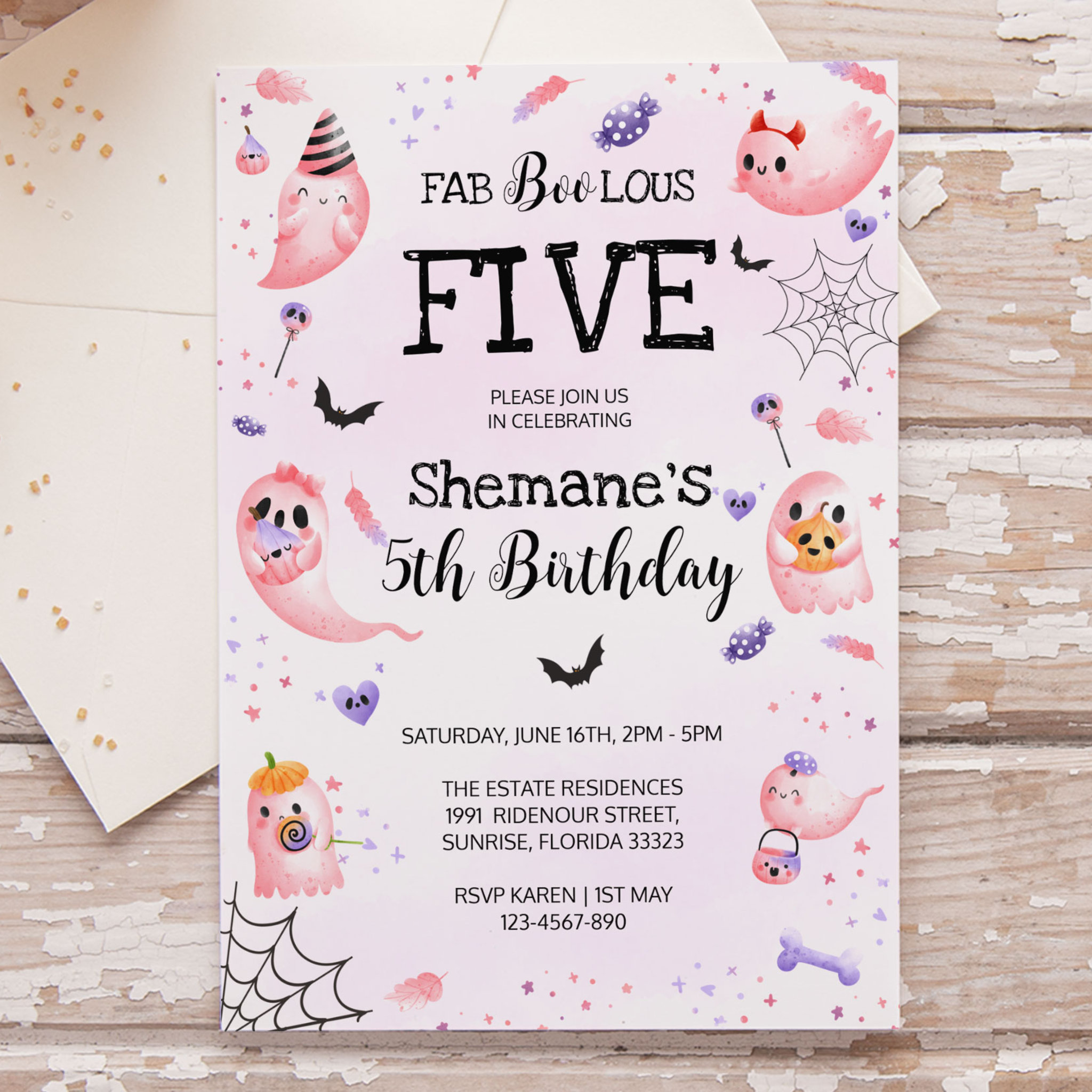 Be the first to review “Pink Ghost Halloween Birthday Invitation”