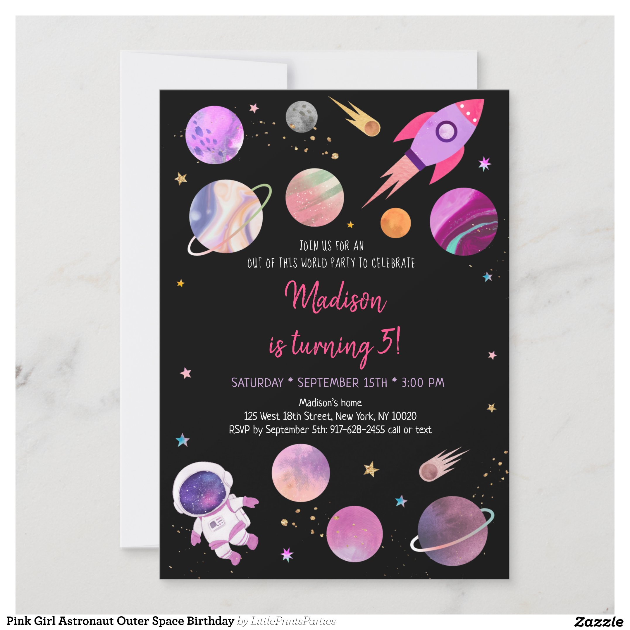 Be the first to review “Pink Girl Astronaut Outer Space Birthday Invitation”