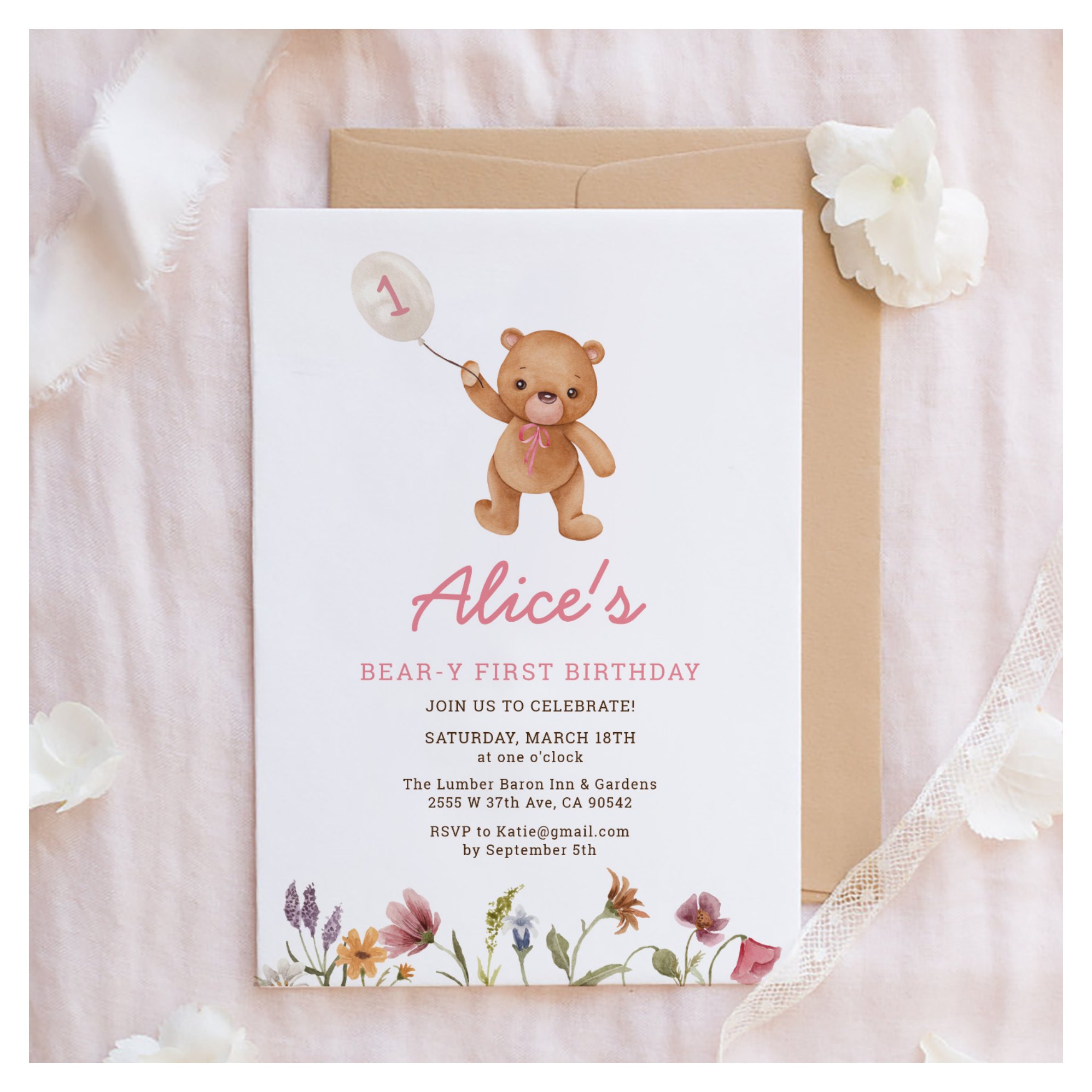 Be the first to review “Pink Girl Teddy Bear First Birthday Invitation”