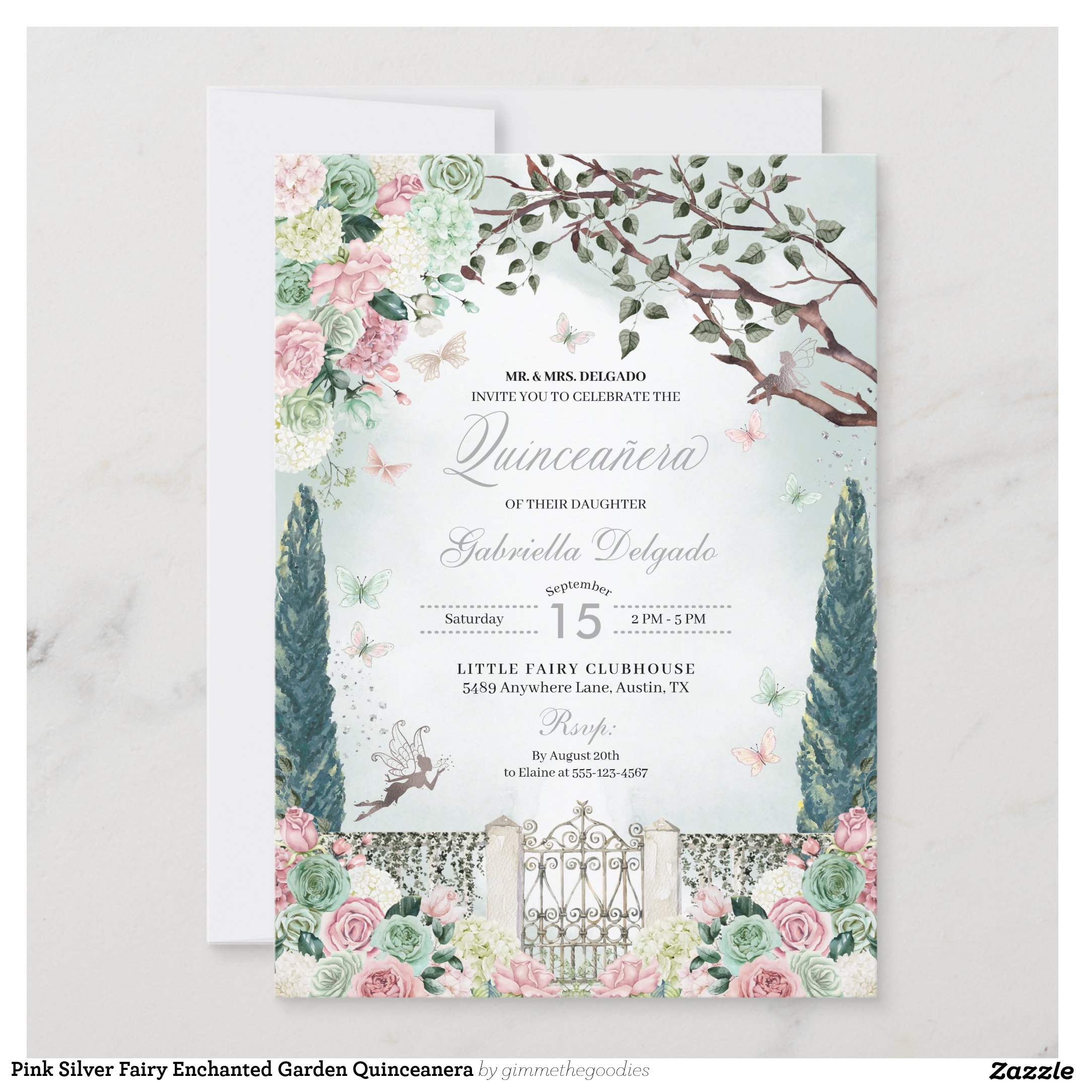 Be the first to review “Pink Silver Fairy Enchanted Garden Quinceanera Invitation”