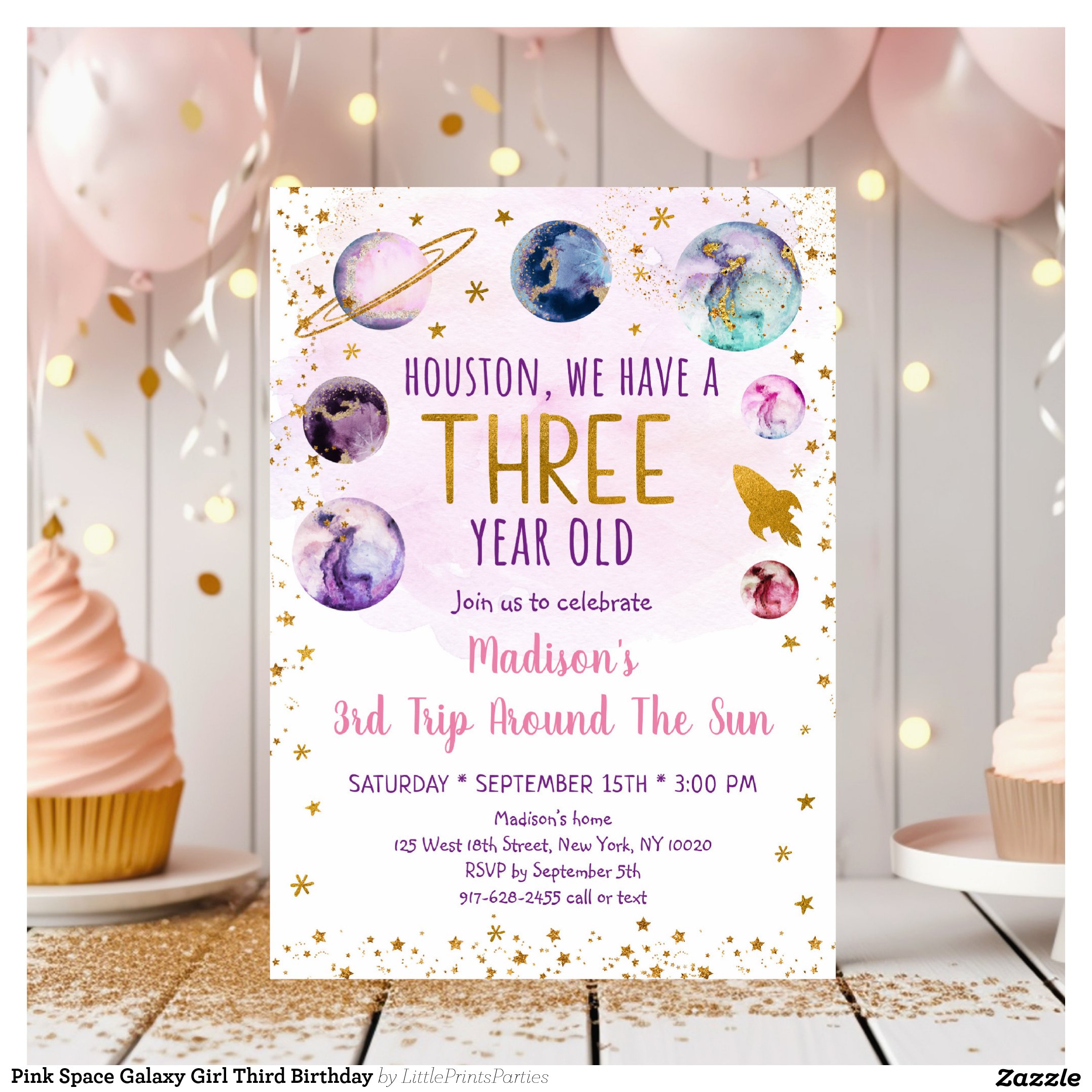Be the first to review “Pink Space Galaxy Girl Third Birthday Invitation”