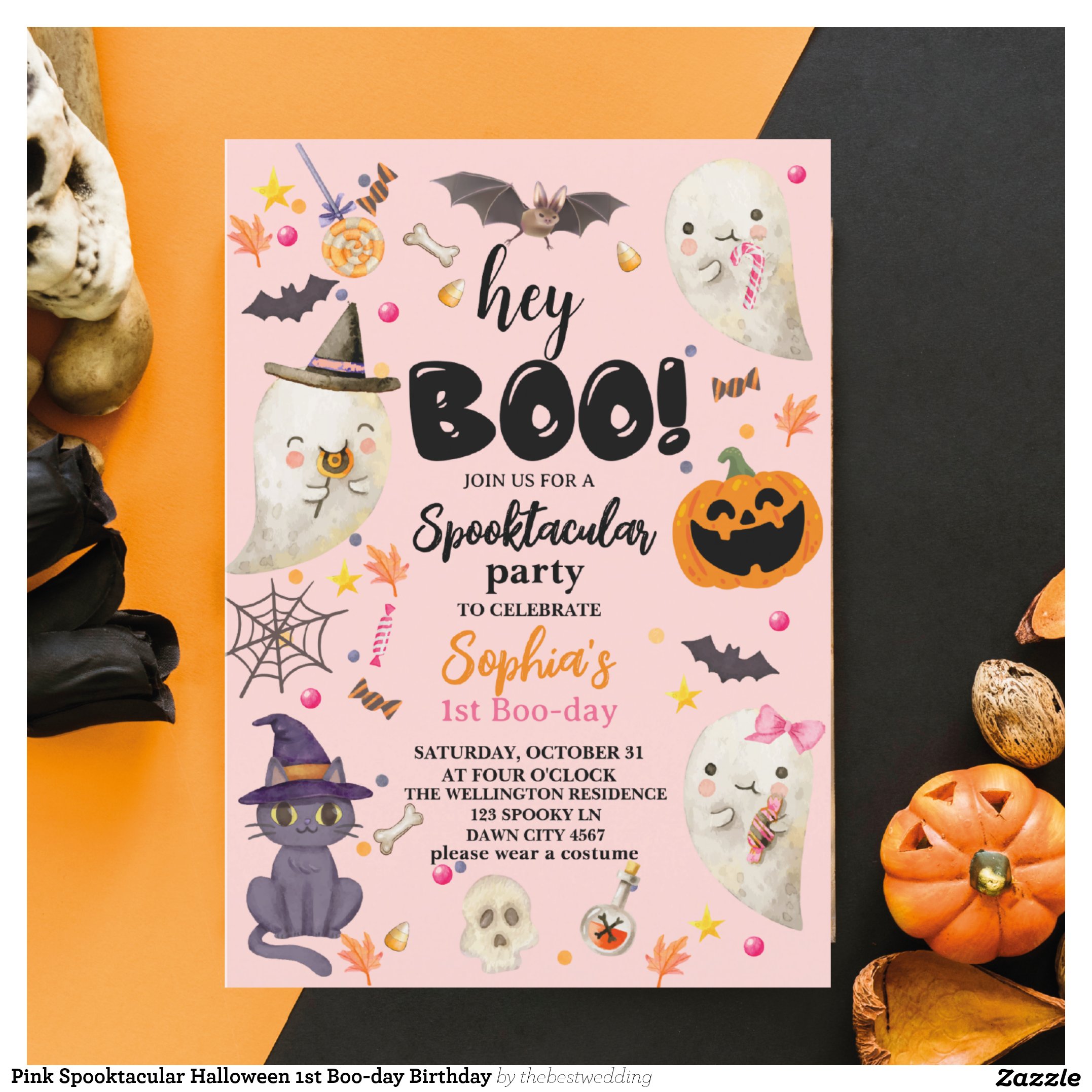 Pink Spooktacular Halloween 1st Boo-day Birthday Invitation