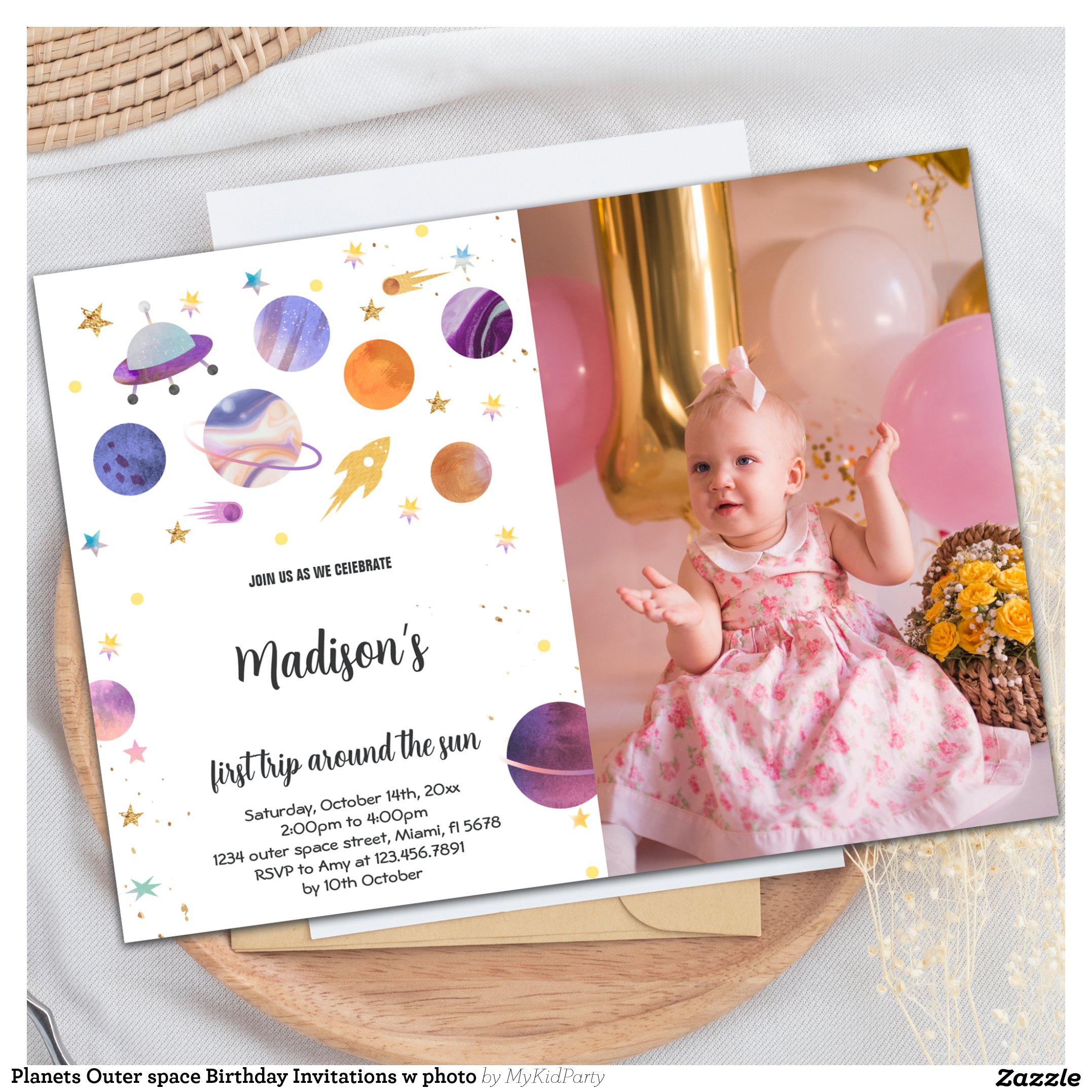 Planets Outer space Birthday Invitations w photo