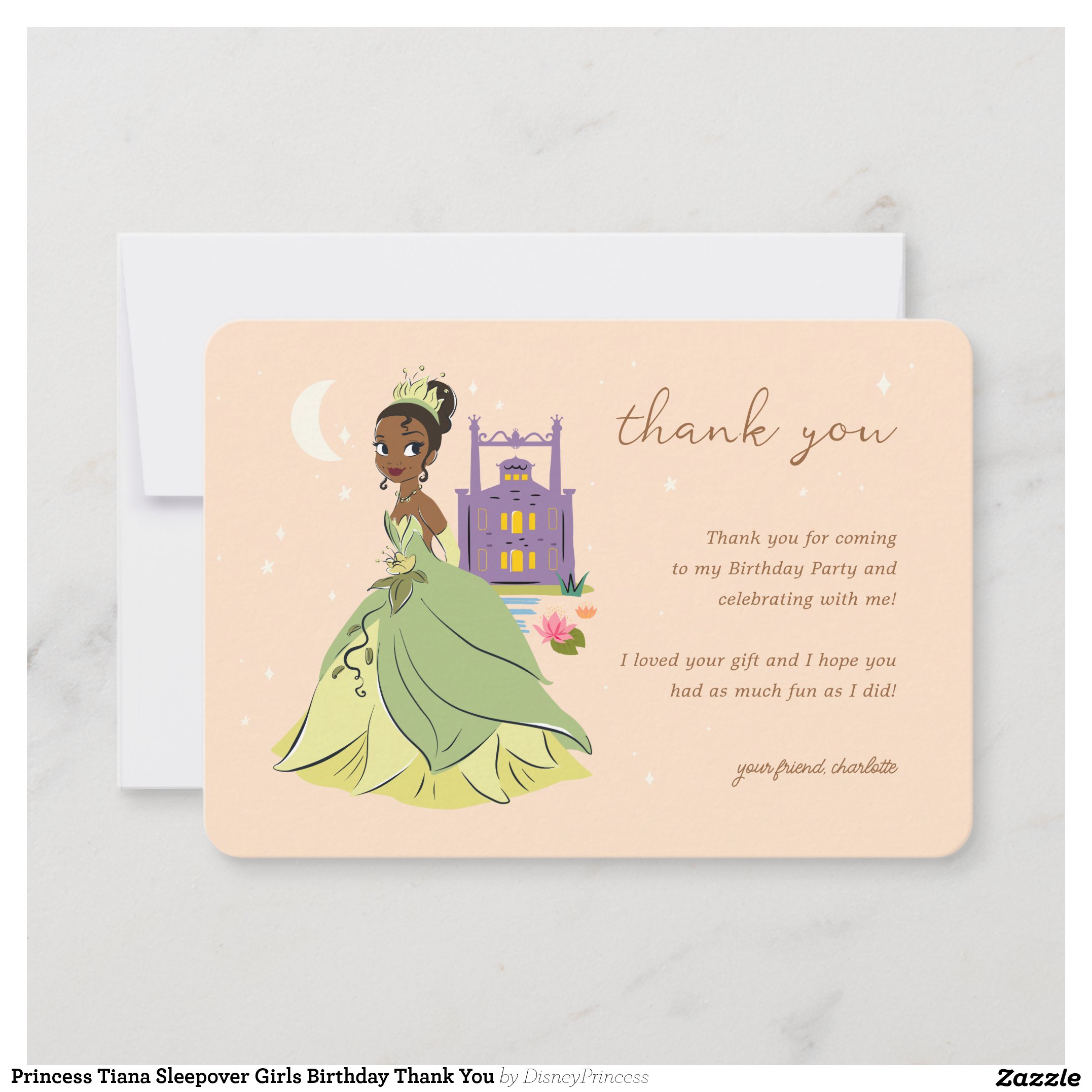 Princess Tiana Sleepover Girls Birthday Thank You Invitation
