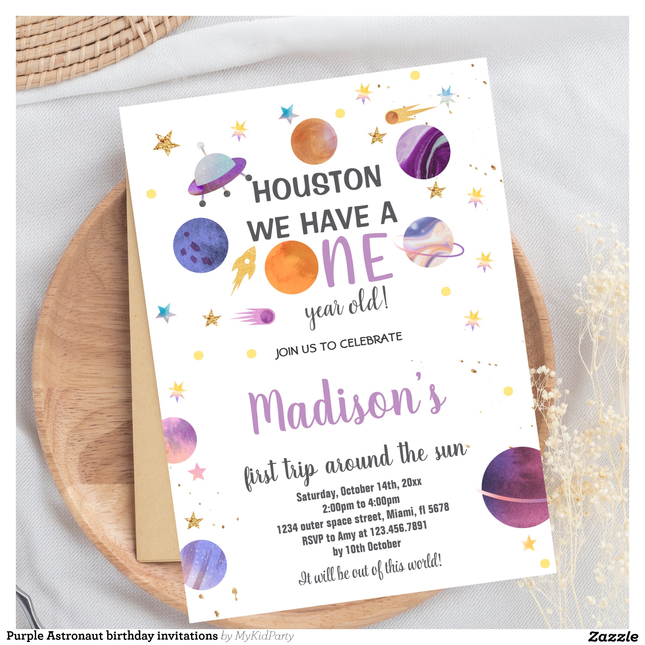 Purple Astronaut birthday invitations