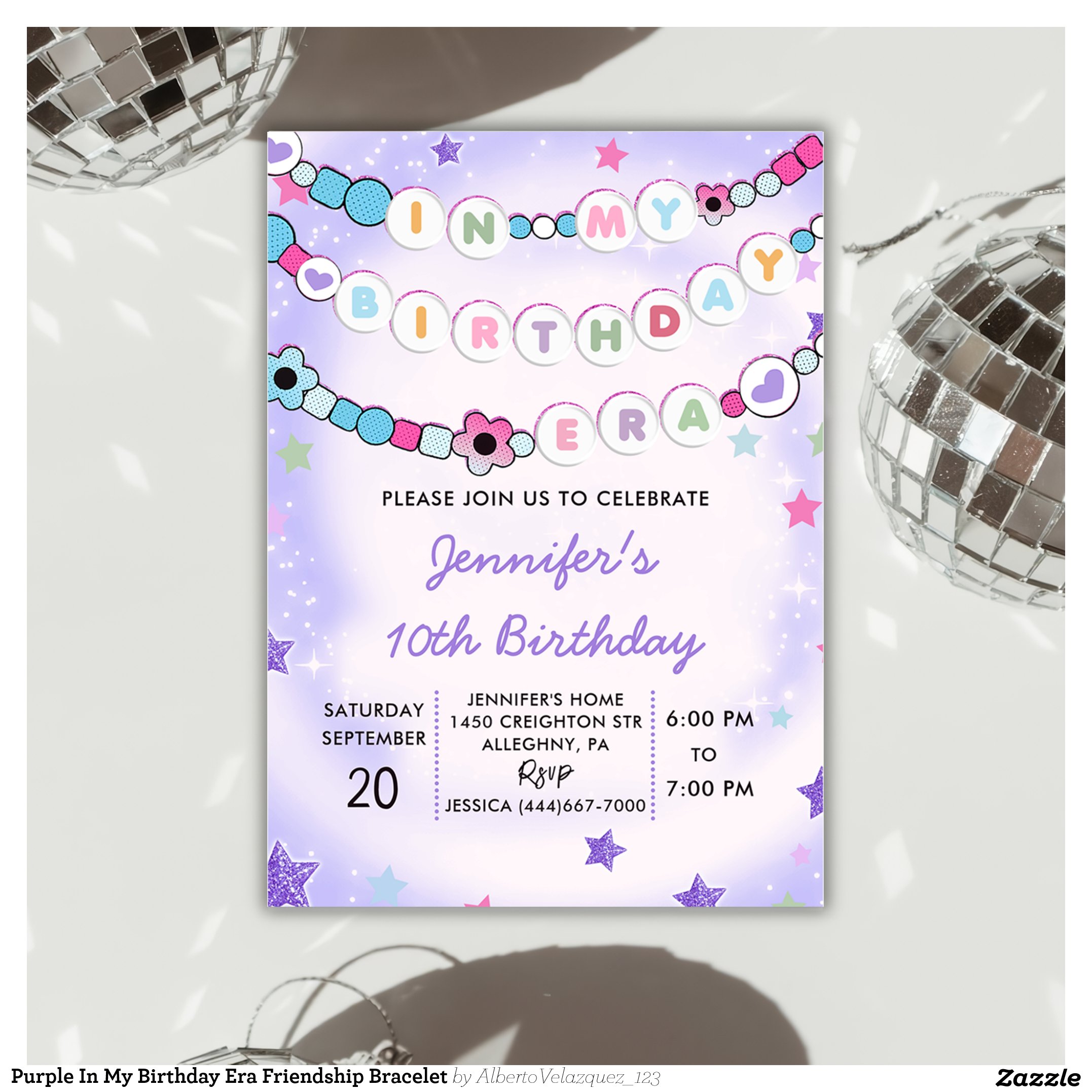 Be the first to review “Purple In My Birthday Era Friendship Bracelet Invitation”