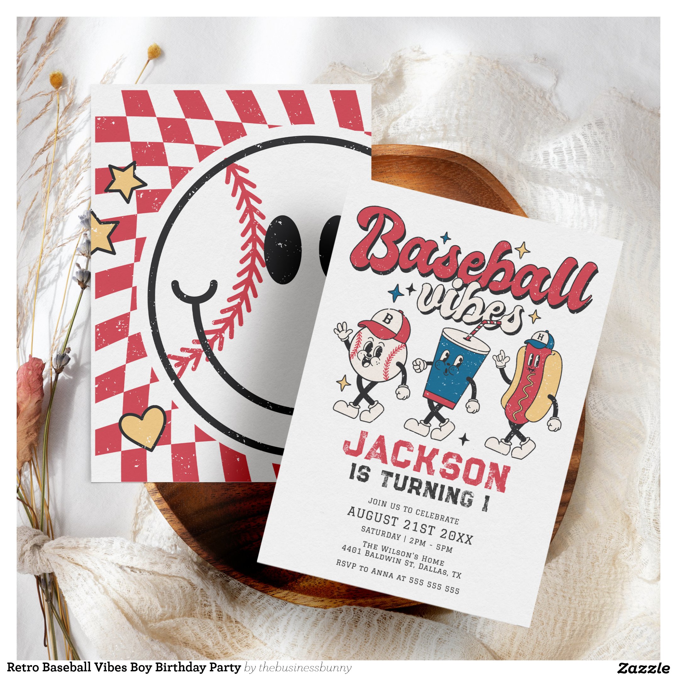 Retro Baseball Vibes Boy Birthday Party Invitation
