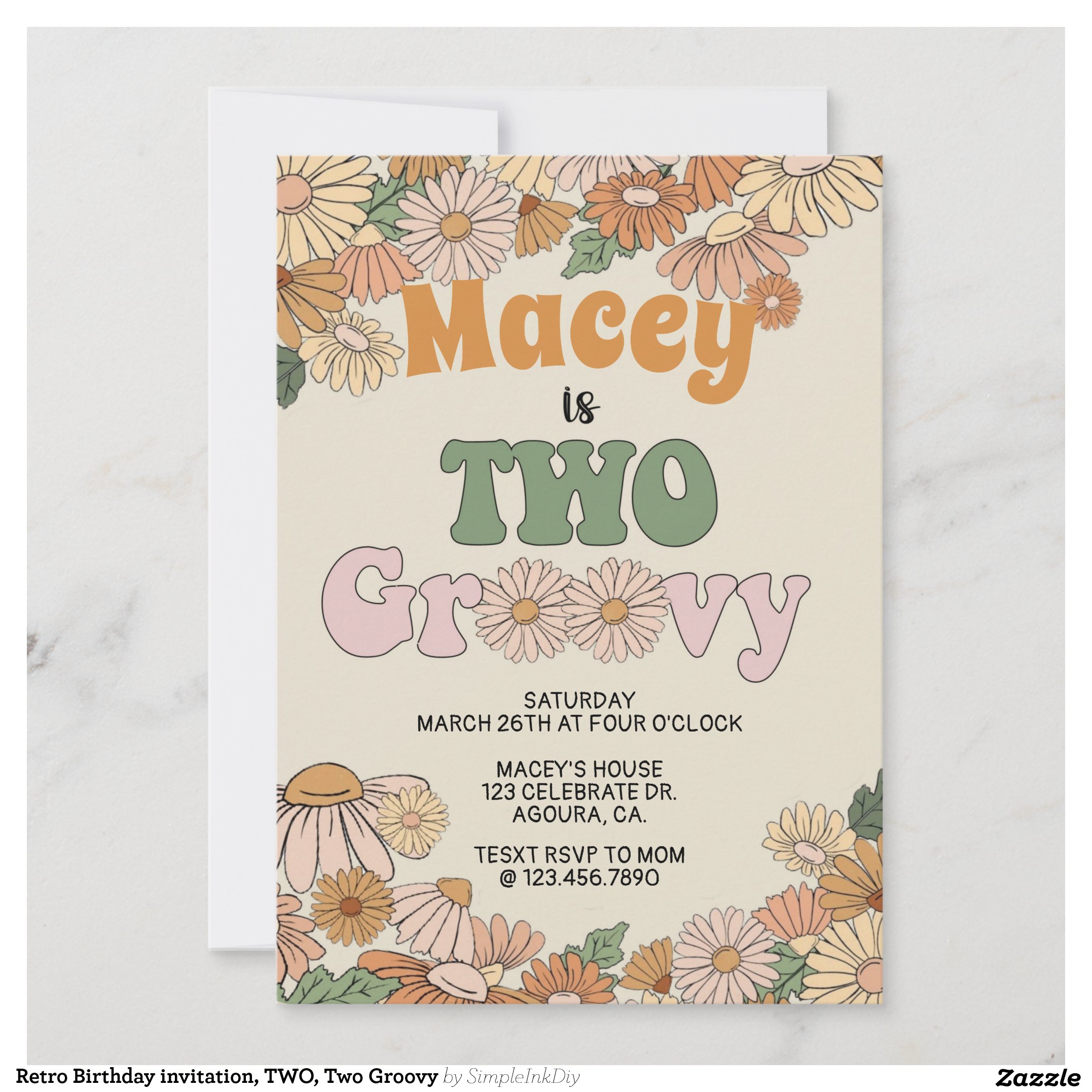 Retro Birthday invitation, TWO, Two Groovy Invitation