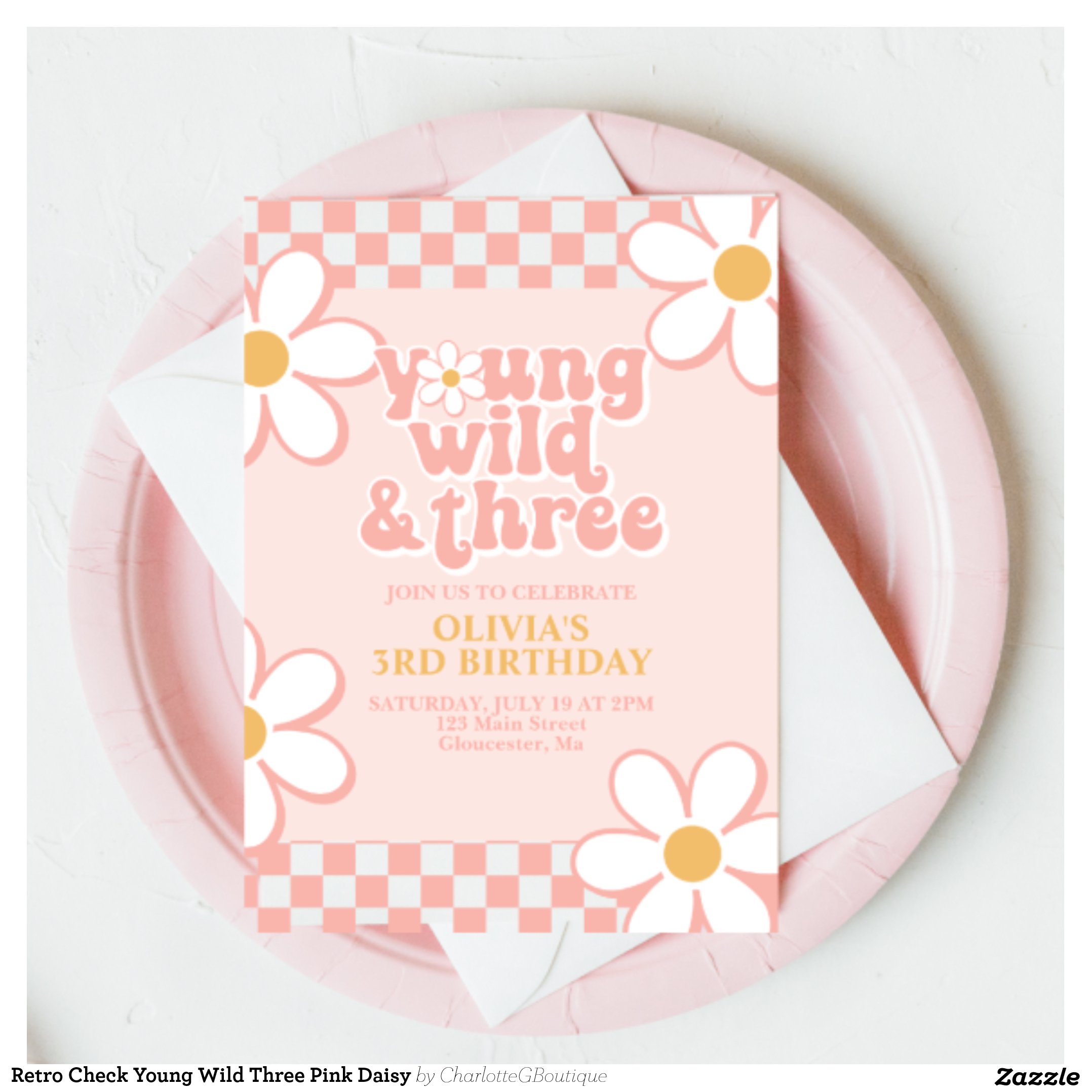 Be the first to review “Retro Check Young Wild Three Pink Daisy Invitation”