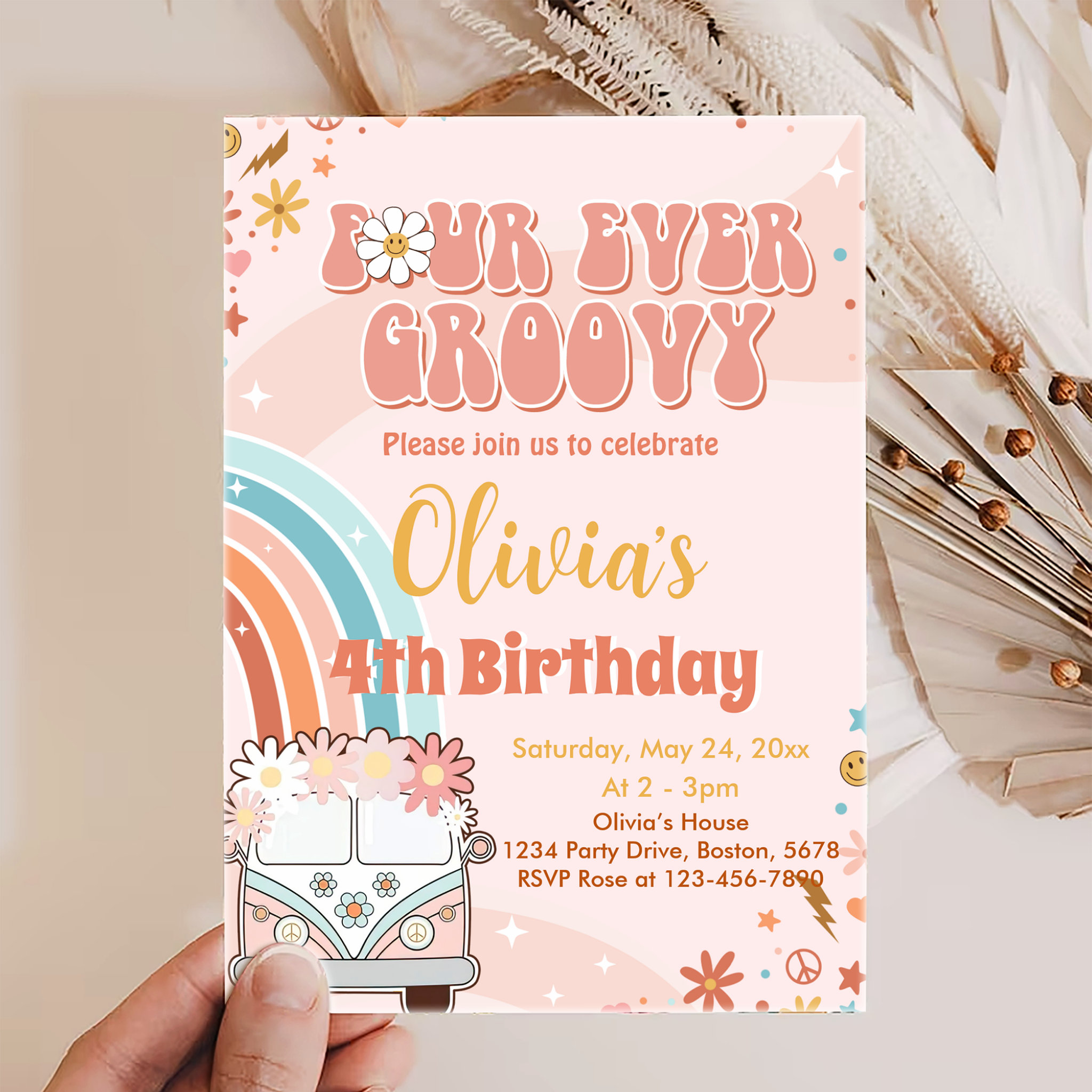Be the first to review “Retro Rainbow Groovy 4th Birthday Invitation”