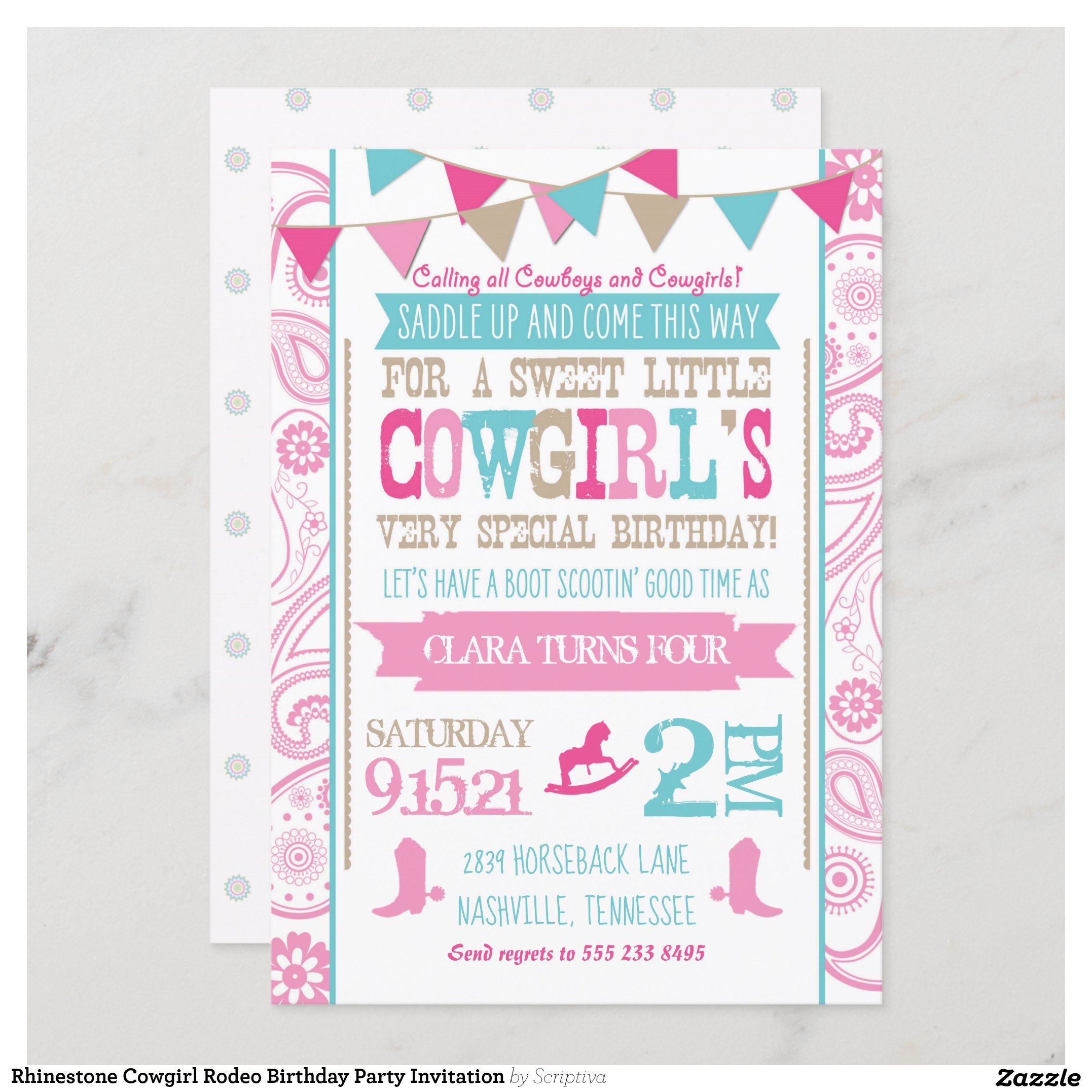 Rhinestone Cowgirl Rodeo Birthday Party Invitation
