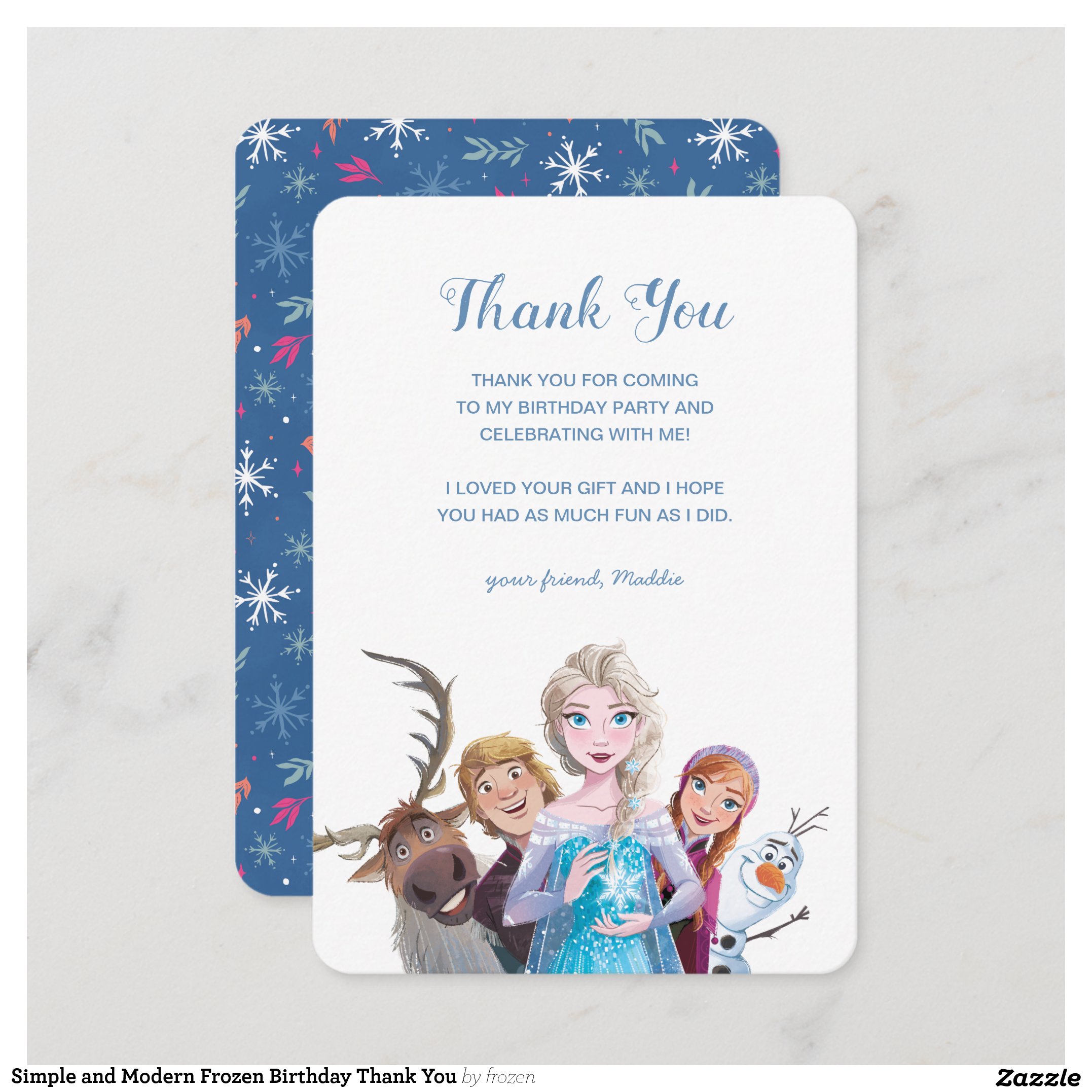 Simple and Modern Frozen Birthday Thank You Invitation