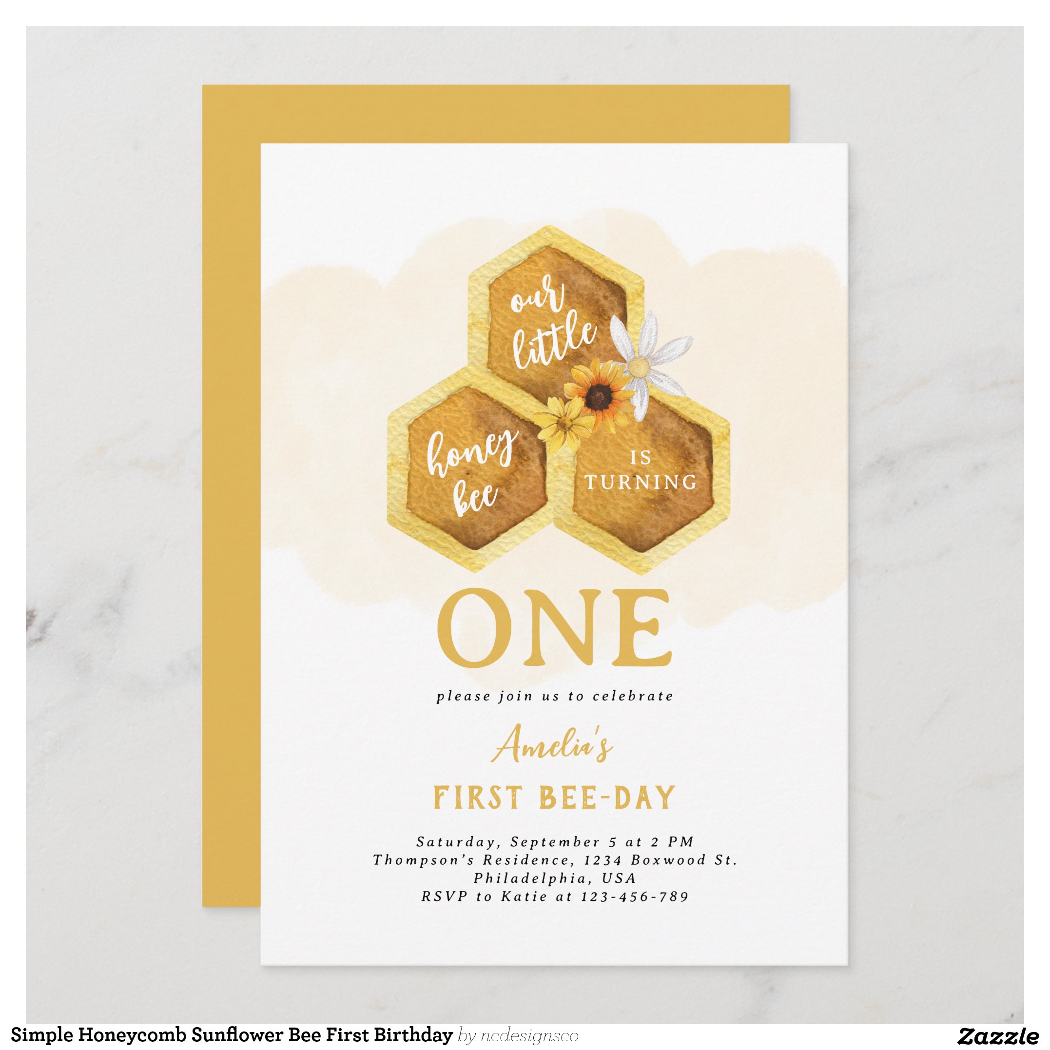 Be the first to review “Simple Honeycomb Sunflower Bee First Birthday Invitation”