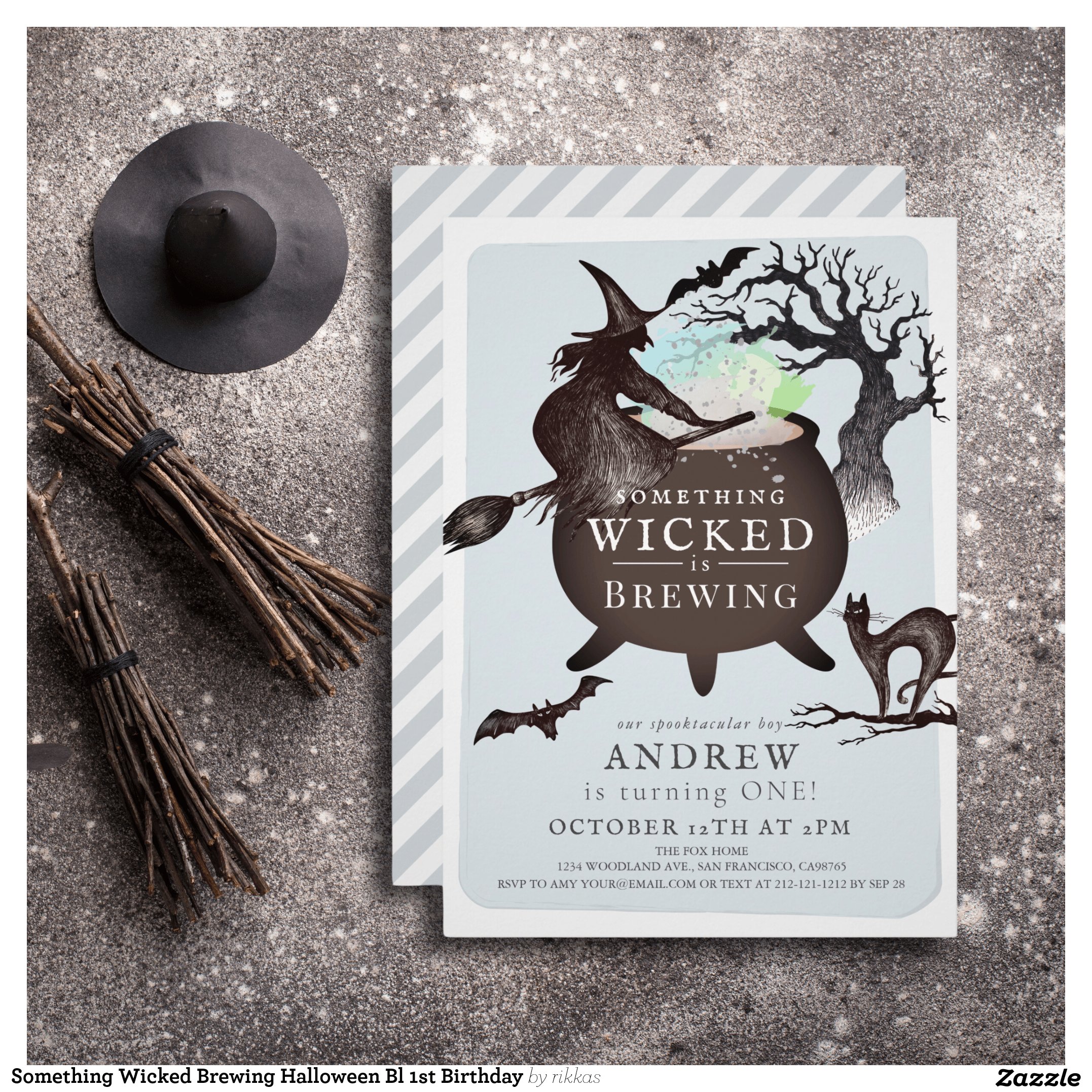Something Wicked Brewing Halloween Bl 1st Birthday Invitation