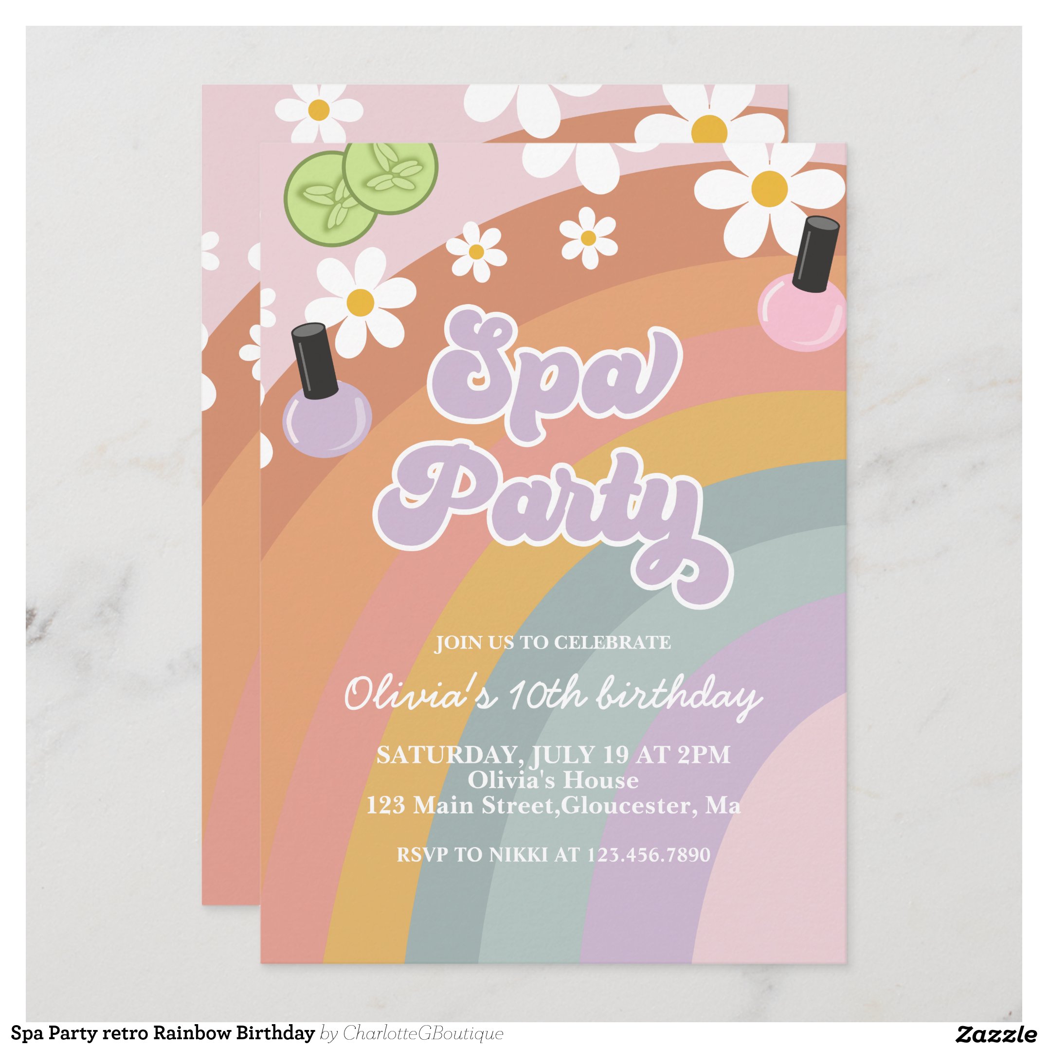 Be the first to review “Spa Party retro Rainbow Birthday Invitation”