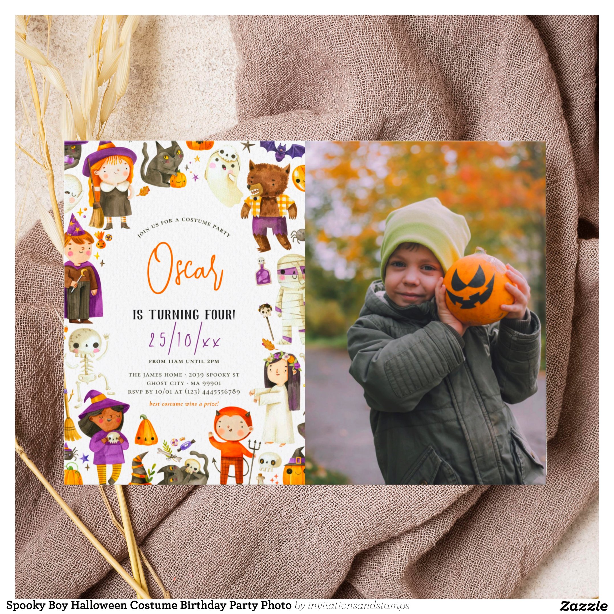 Spooky Boy Halloween Costume Birthday Party Photo Invitation