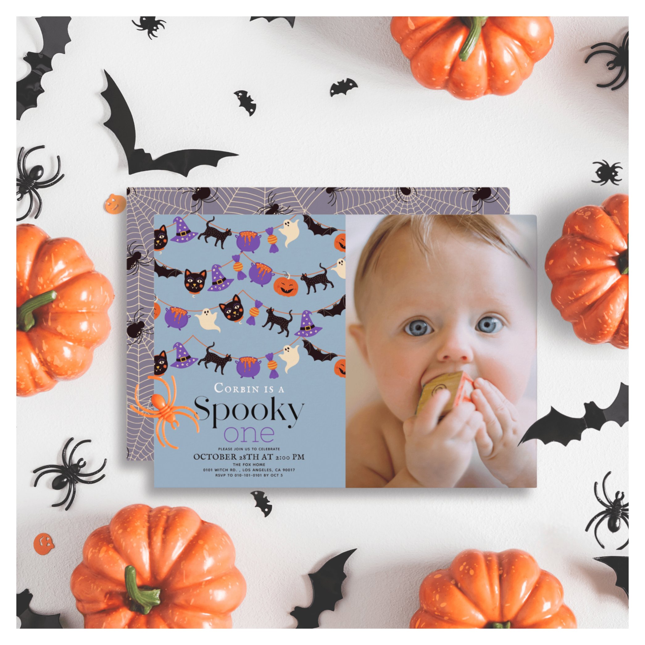 Be the first to review “Spooky One Halloween Blue 1st Birthday Photo Invitation”