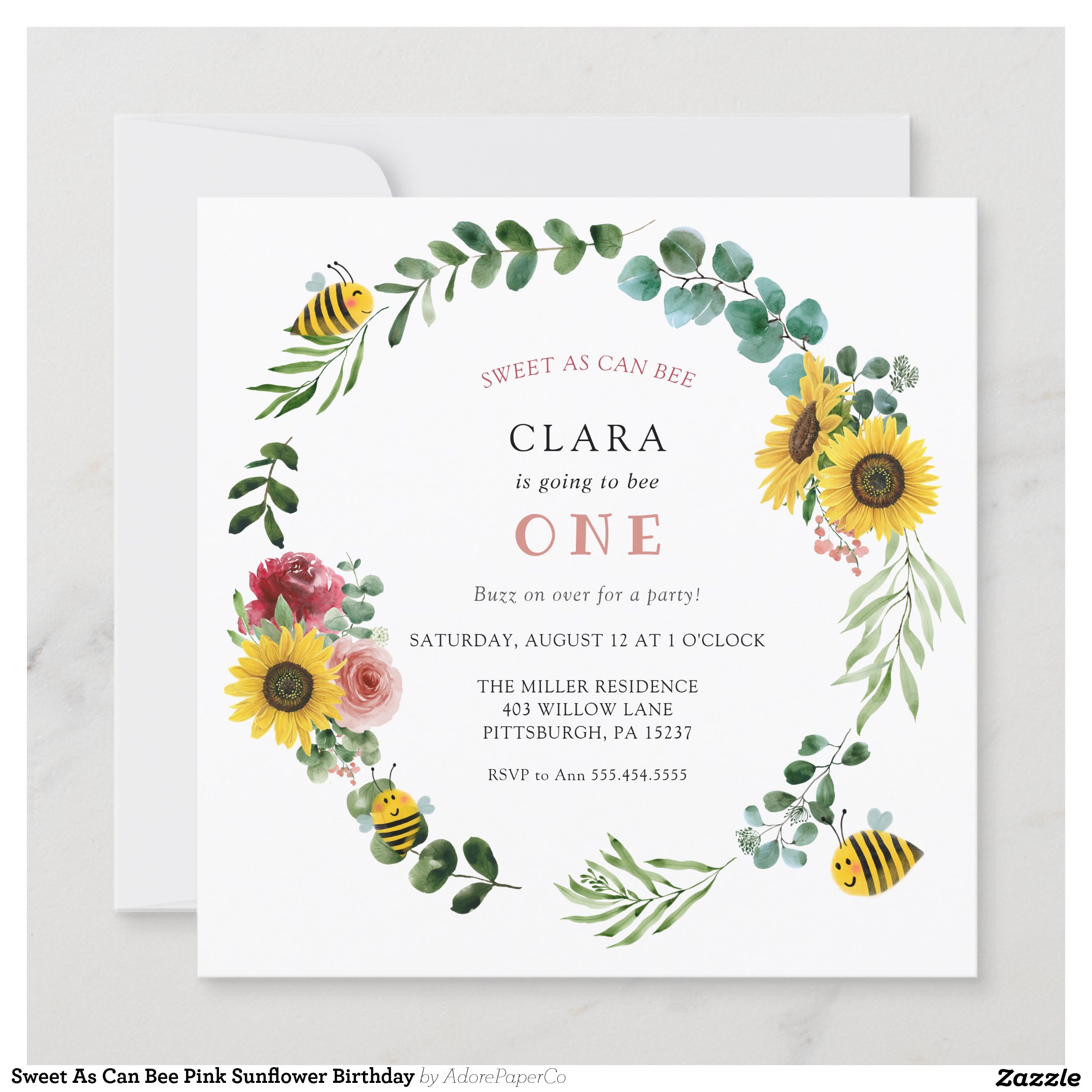 Be the first to review “Sweet As Can Bee Pink Sunflower Birthday Invitation”
