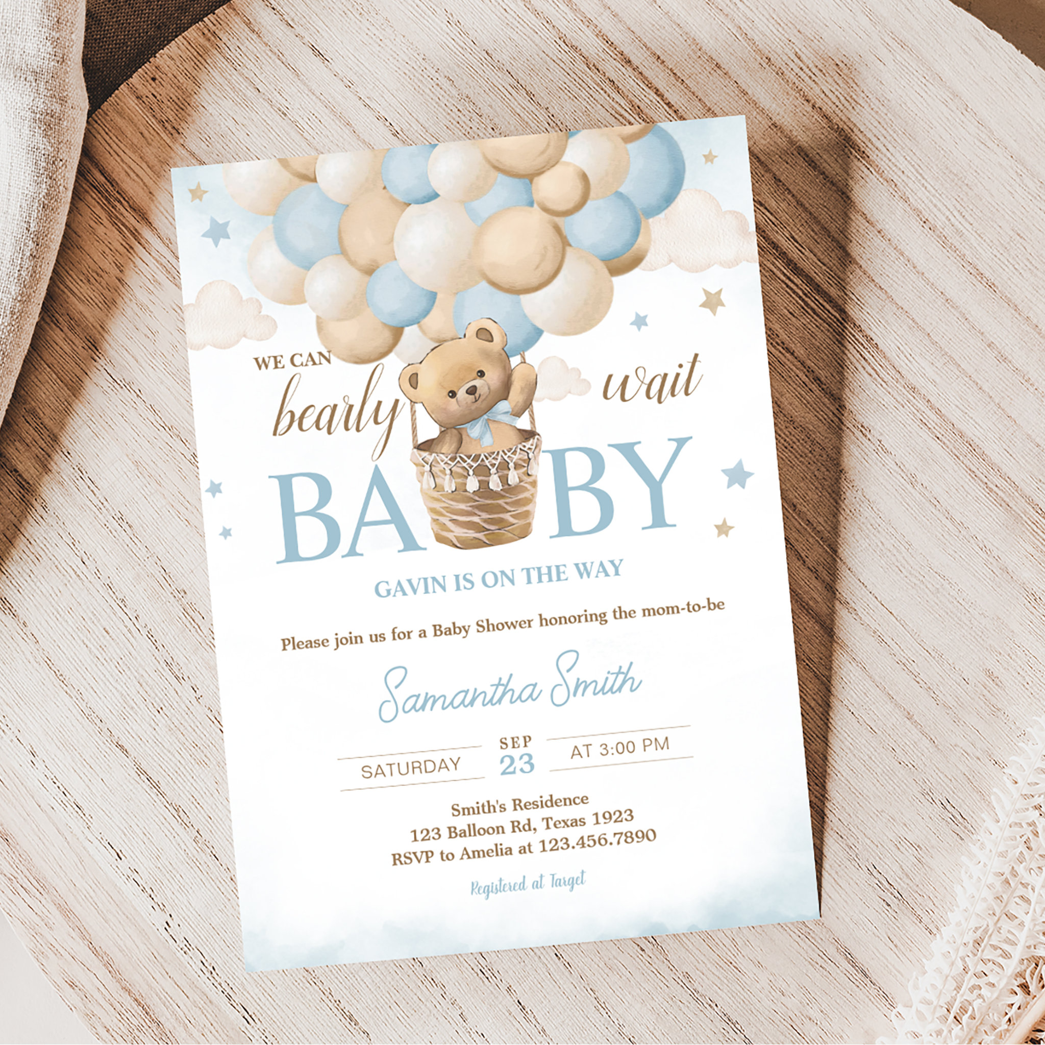 Teddy Bear Hot Air Balloon Baby Shower Invitation