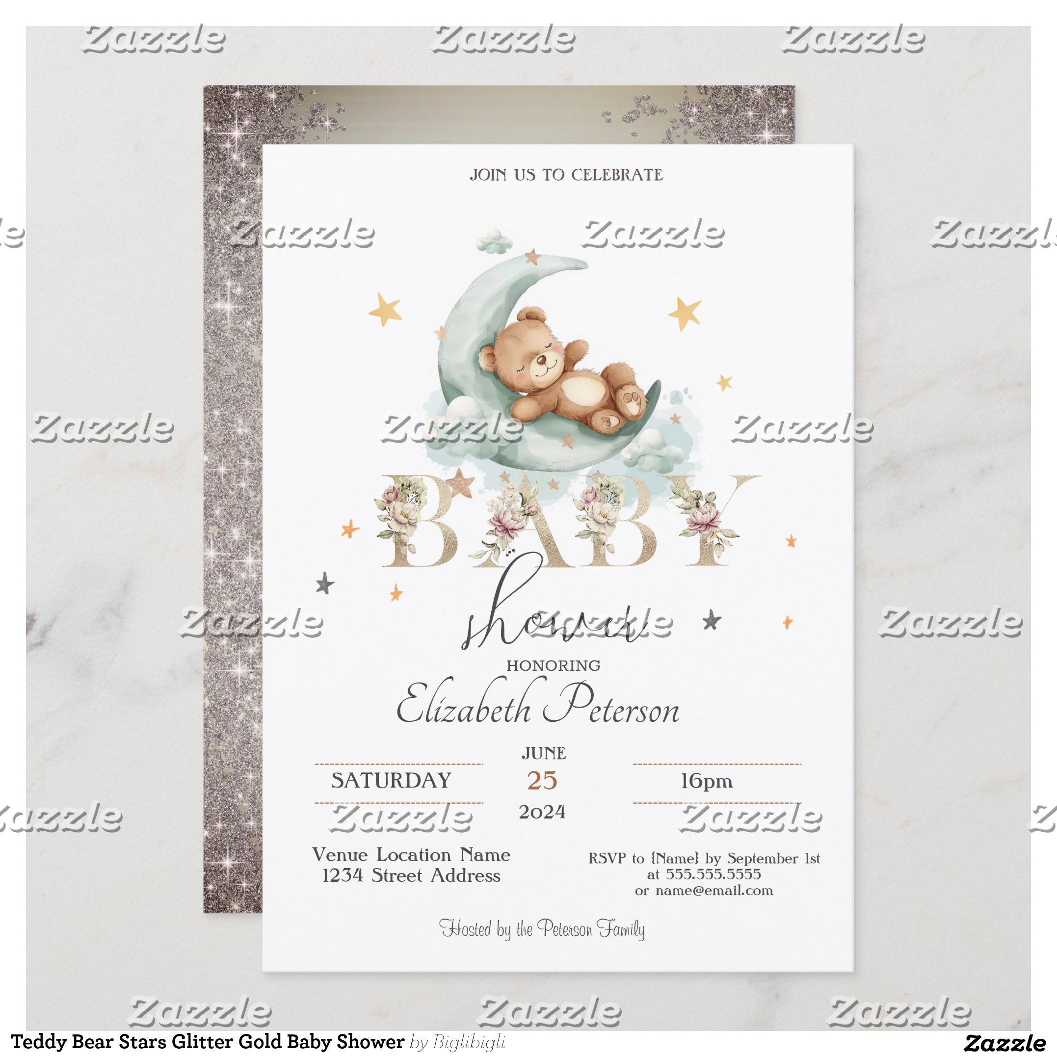 Be the first to review “Teddy Bear Stars Glitter Gold Baby Shower Invitation”