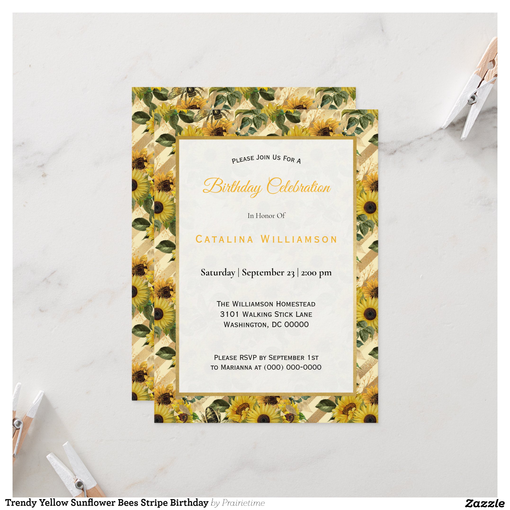 Be the first to review “Trendy Yellow Sunflower Bees Stripe Birthday Invitation”