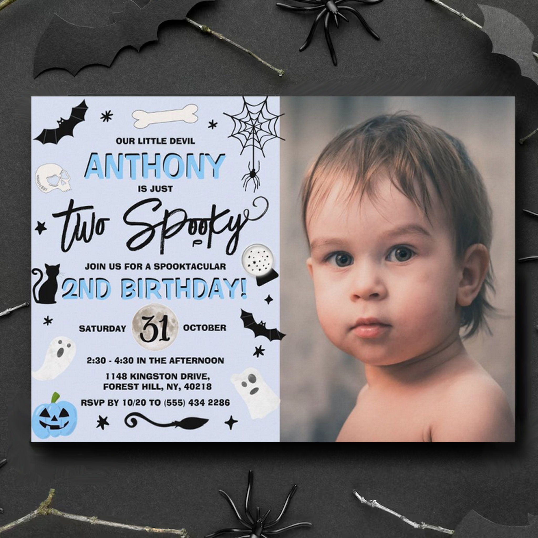 Two Spooky! Boys Halloween 2nd Birthday Photo Invitation