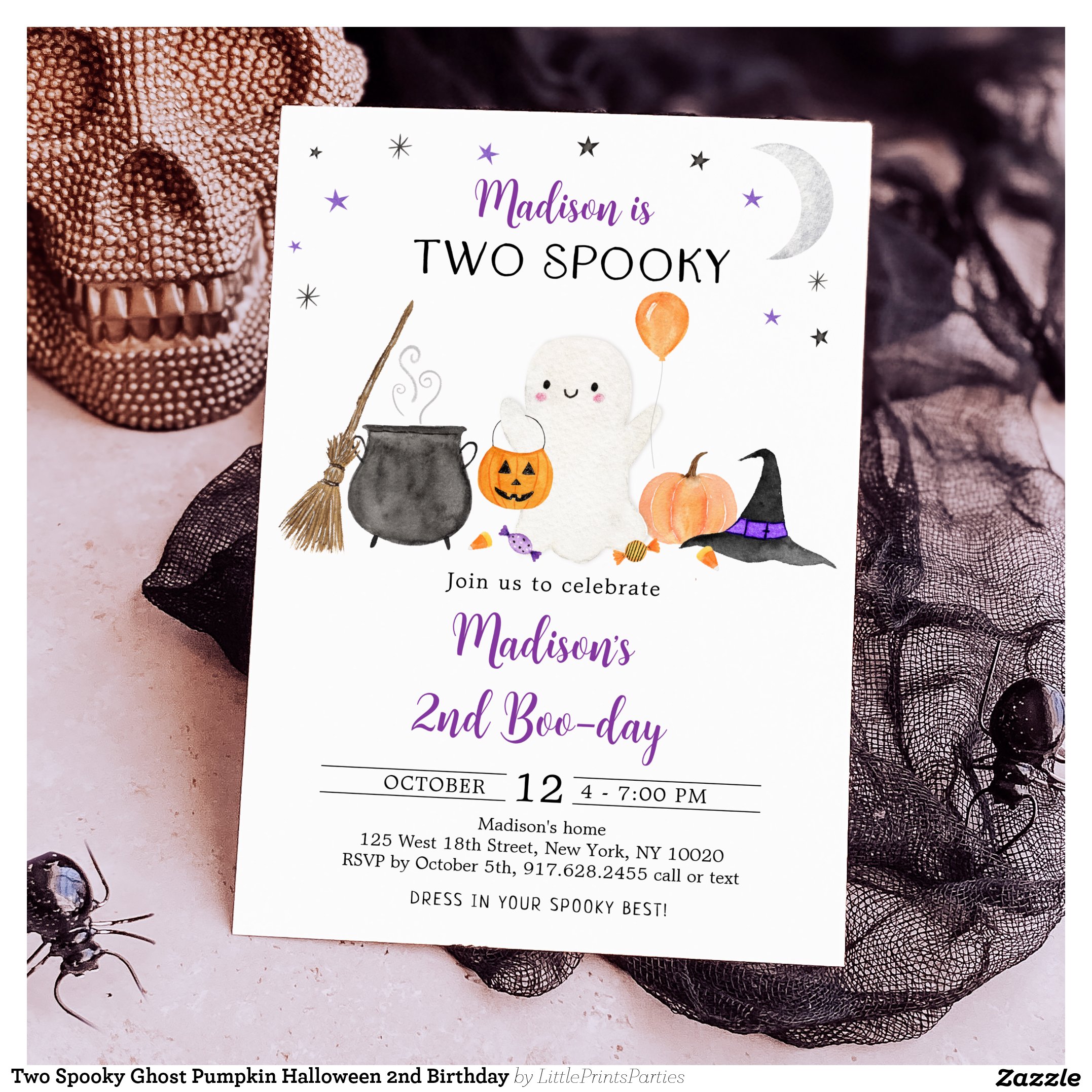 Two Spooky Ghost Pumpkin Halloween 2nd Birthday Invitation