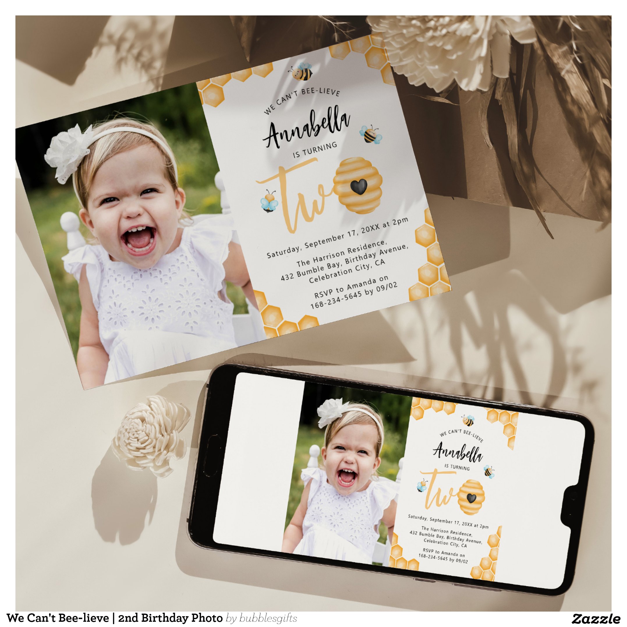 We Can’t Bee-lieve 2nd Birthday Photo Invitation