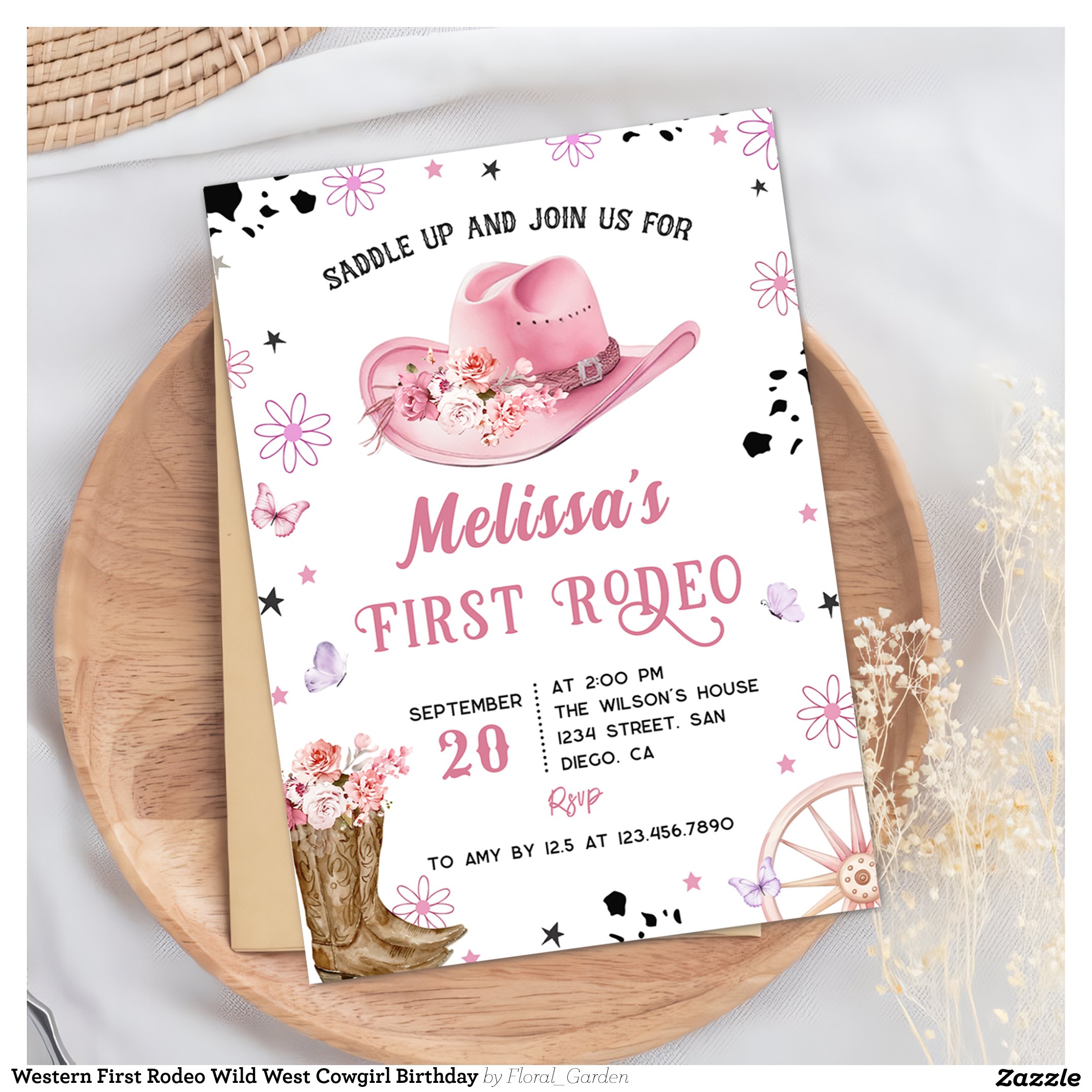Western First Rodeo Wild West Cowgirl Birthday Invitation