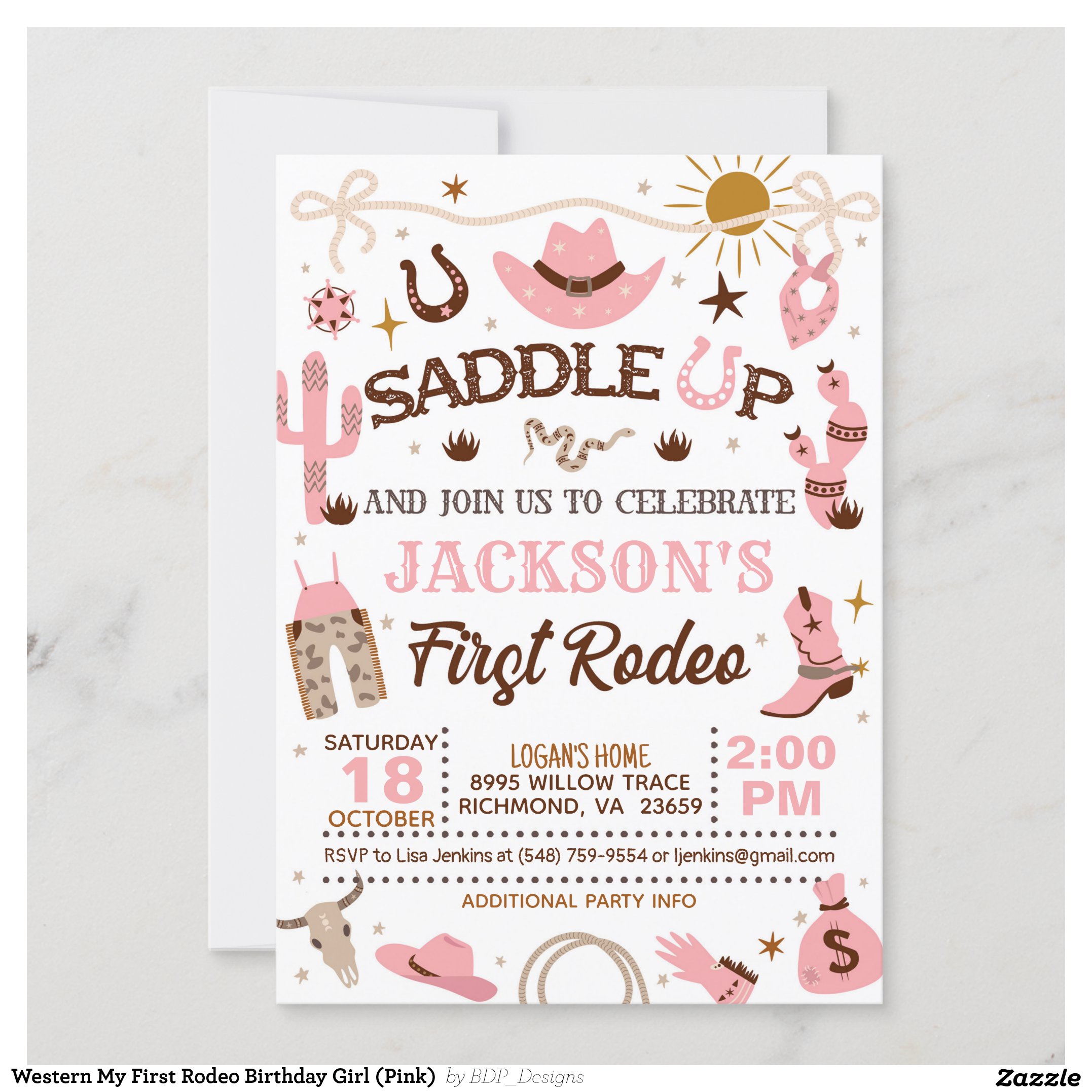 Western My First Rodeo Birthday Girl (Pink) Invitation