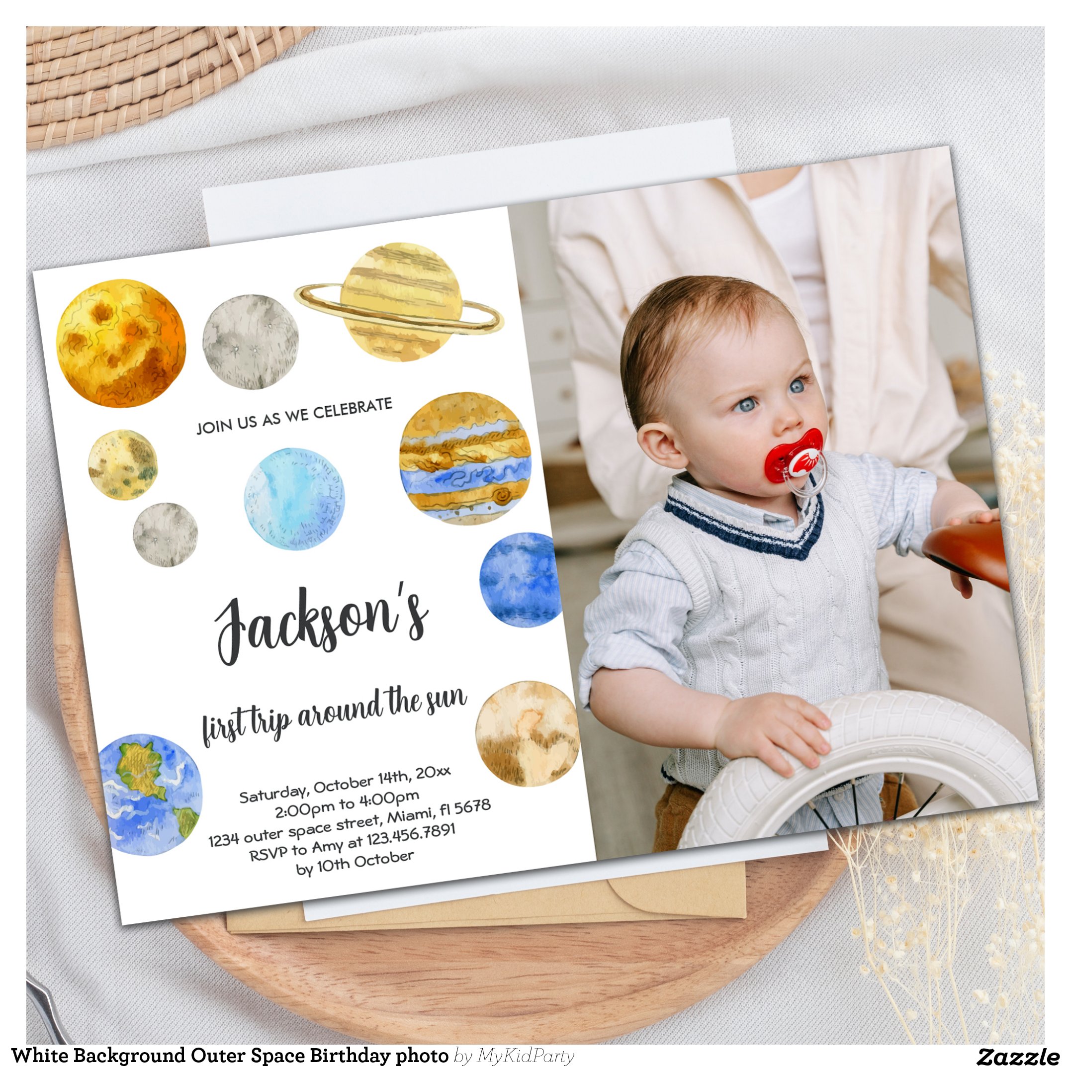 Be the first to review “White Background Outer Space Birthday photo Invitation”