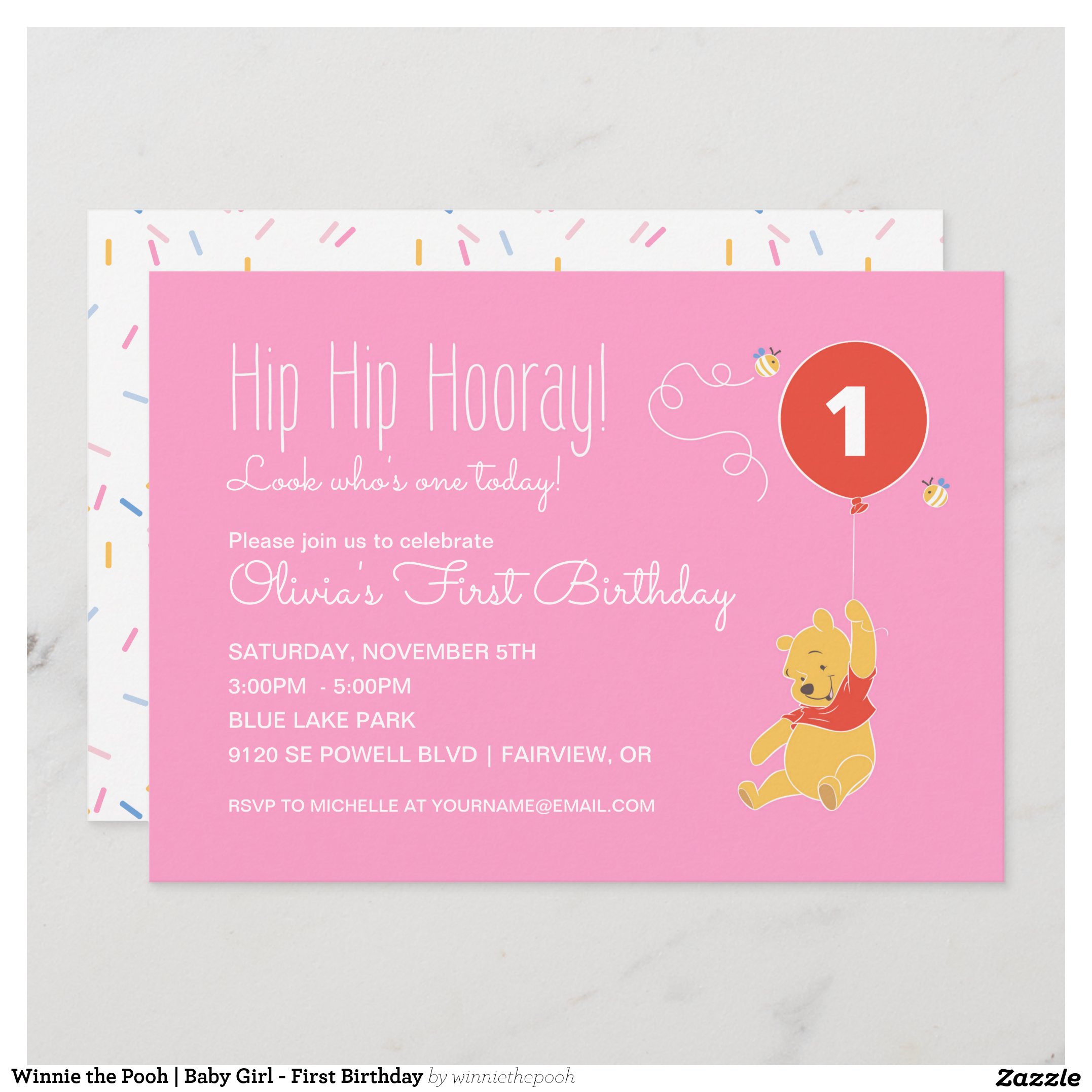 Winnie the Pooh Baby Girl – First Birthday Invitation