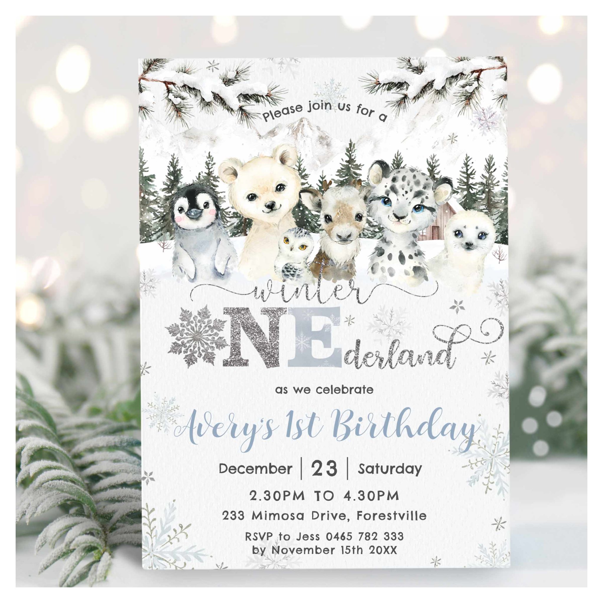Be the first to review “Winter Onederland Arctic Animals Snow 1st Birthday Invitation”