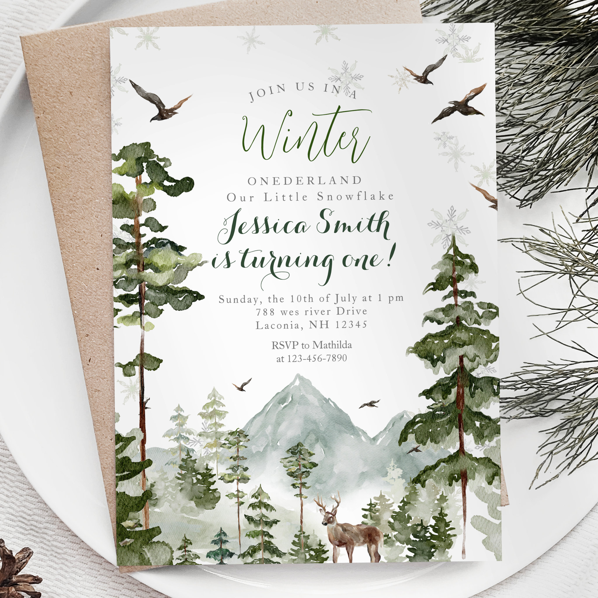 Be the first to review “Winter onederland birthday party Woodland Forest Invitation”
