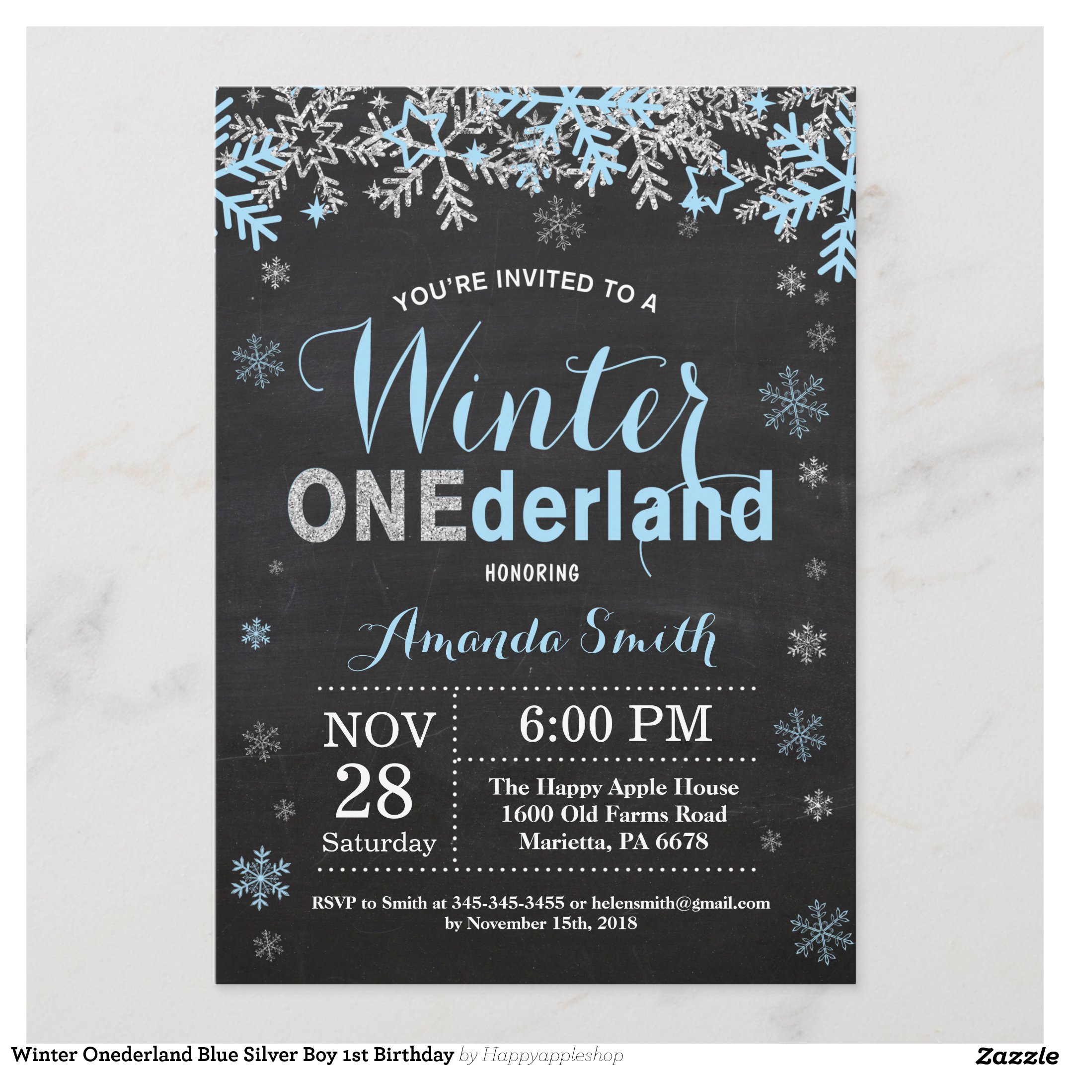 Winter Onederland Blue Silver Boy 1st Birthday Invitation