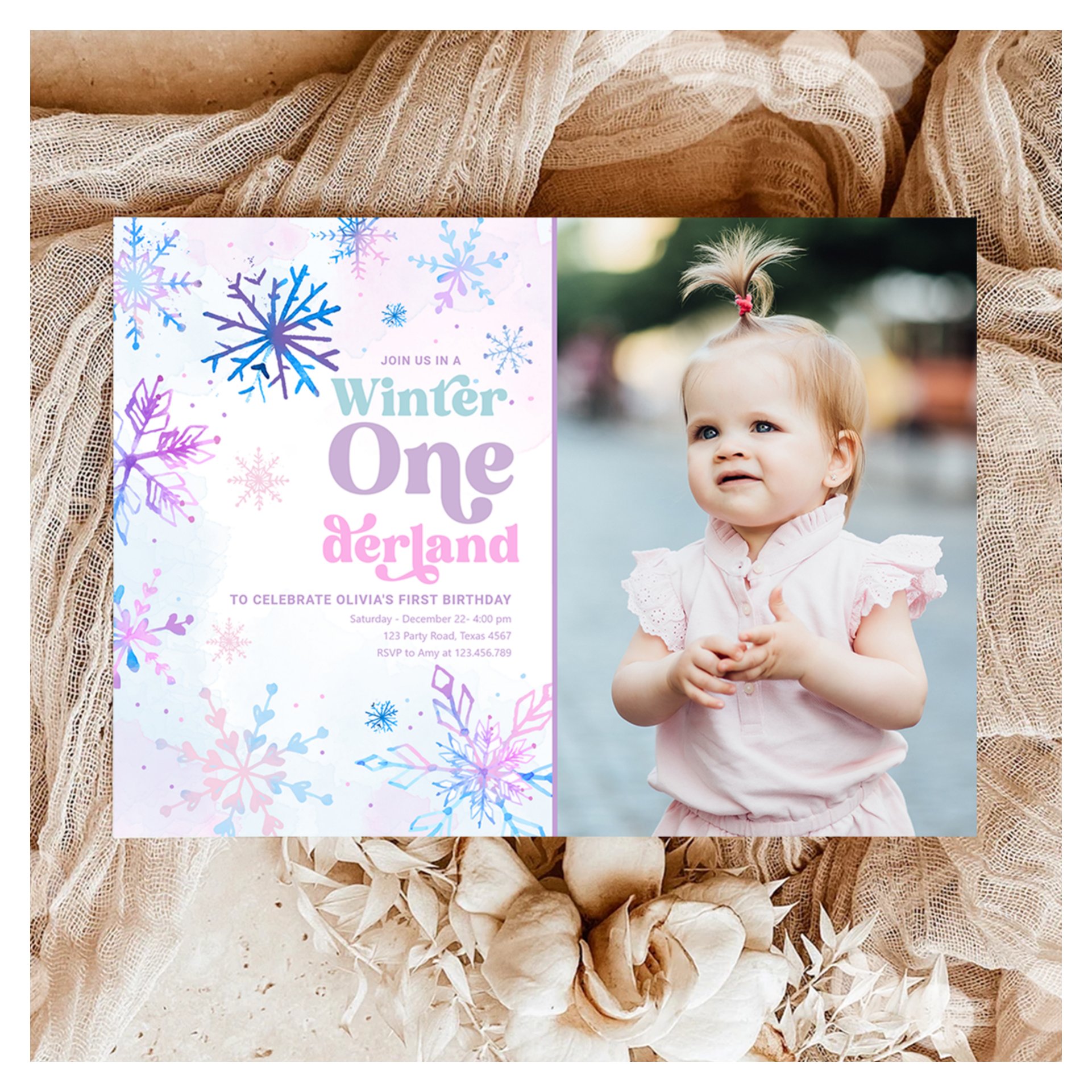 Be the first to review “Winter Onederland Snowflakes Girl First Birthday Invitation”
