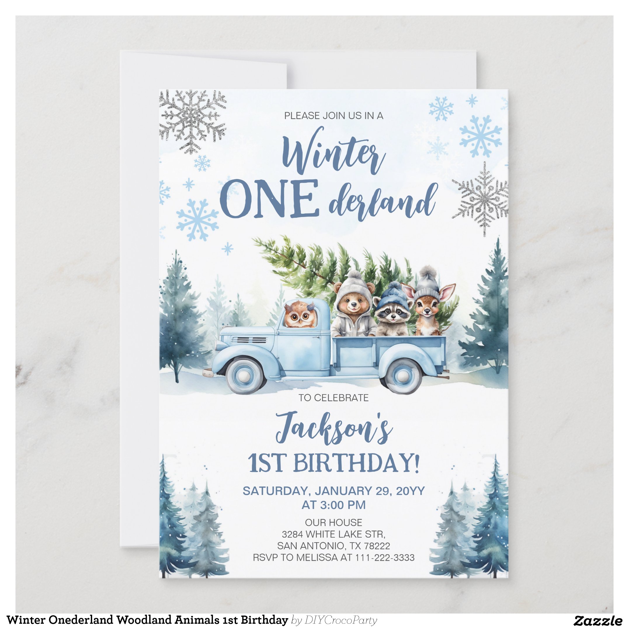 Winter Onederland Woodland Animals 1st Birthday Invitation