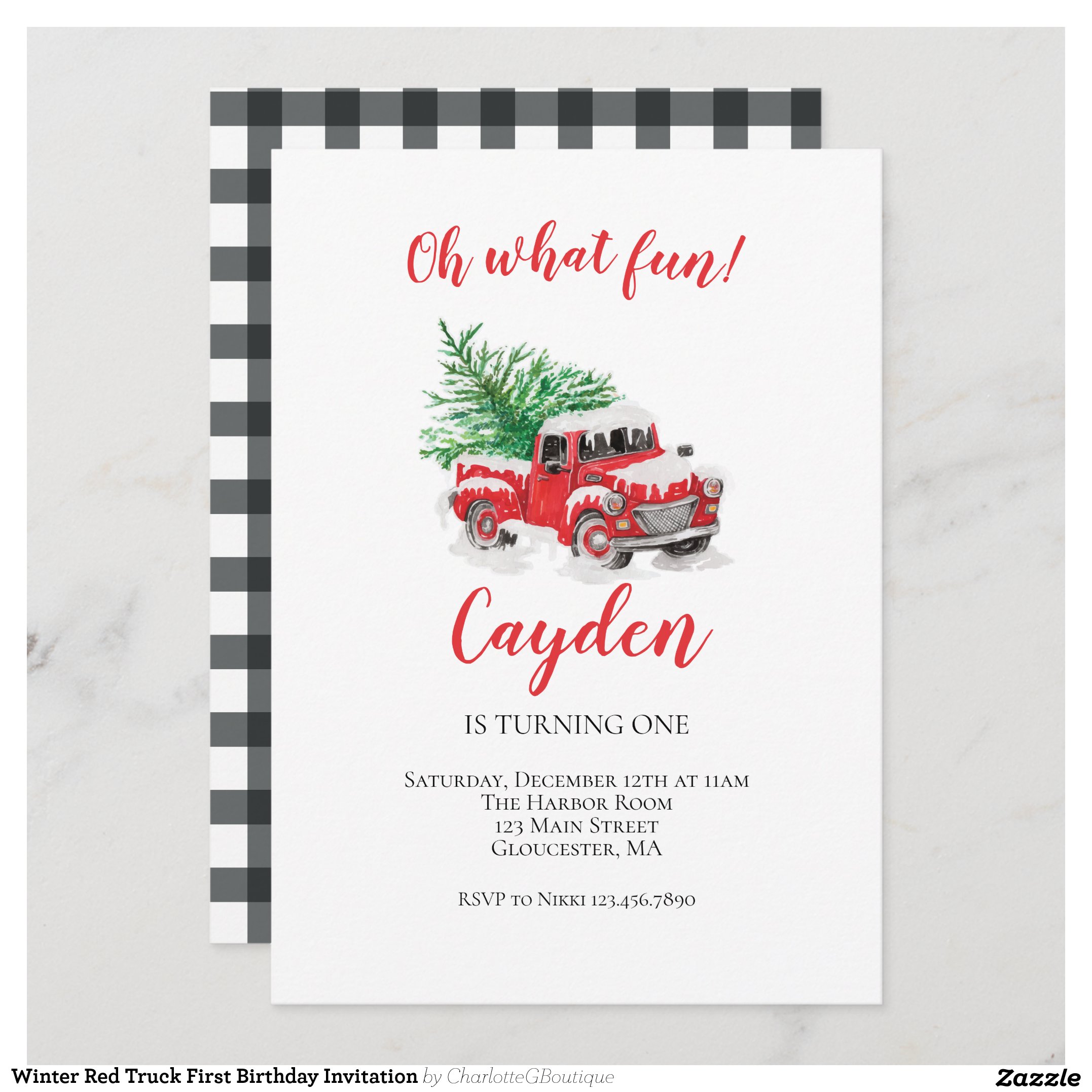 Be the first to review “Winter Red Truck First Birthday Invitation”