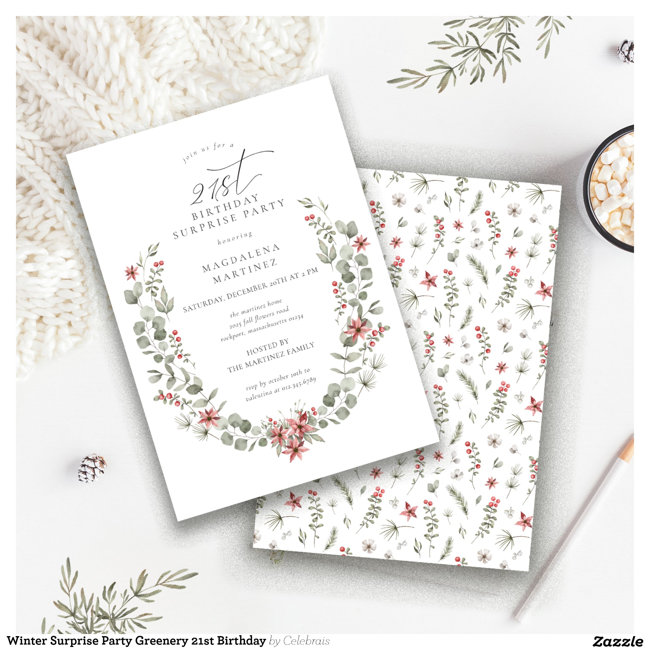 Be the first to review “Winter Surprise Party Greenery 21st Birthday Invitation”