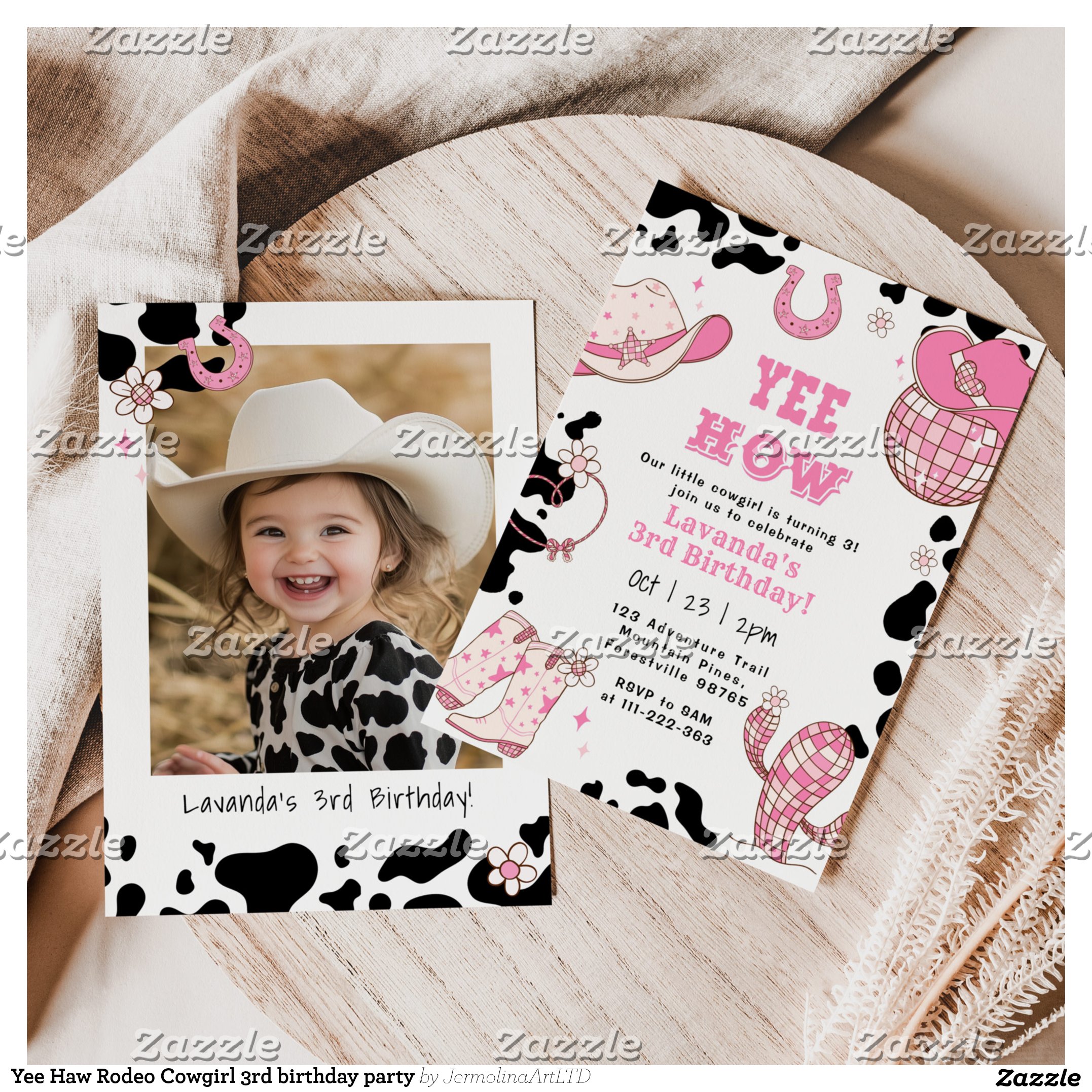 Yee Haw Rodeo Cowgirl 3rd birthday party Invitation